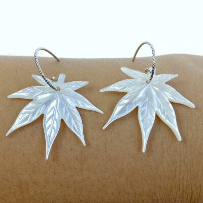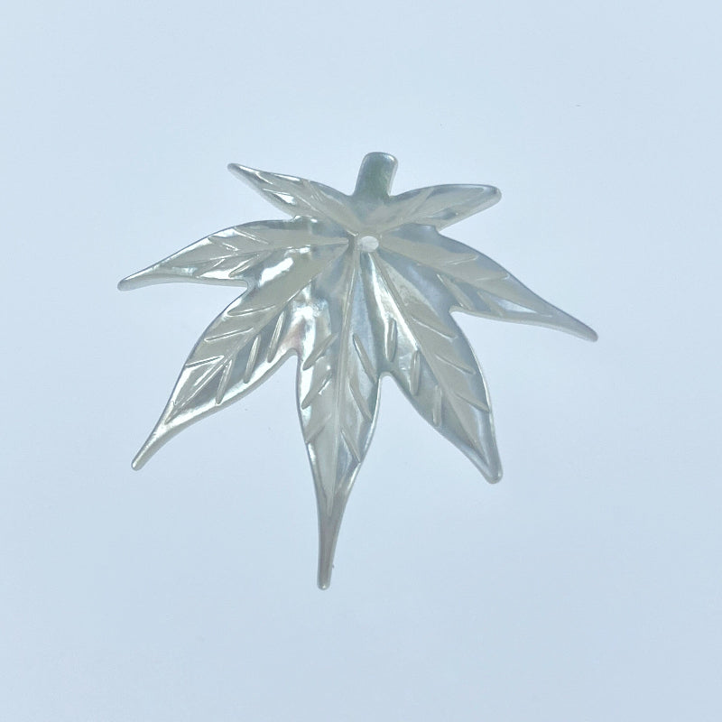 2pc Cannabis Hemp Beads White Mother Of Pearl Hand Carved WM-0175