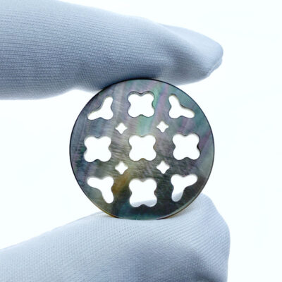 2pc Clover Cut Filigree Round Beads Black Mother Of Pearl 25mm BM-0099 - Image 5