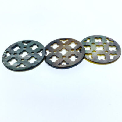 2pc Clover Cut Filigree Round Beads Black Mother Of Pearl 25mm BM-0099 - Image 3