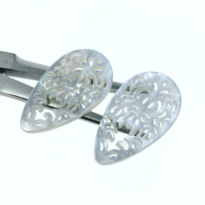 2pc Filigree Drop Beads White Mother of Pearl 35mm Pendants WM-0198 - Image 5
