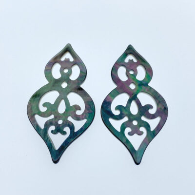 2pc Filigree Drop Black Mother Of Pearl Drop Pendants Charms BM-0040