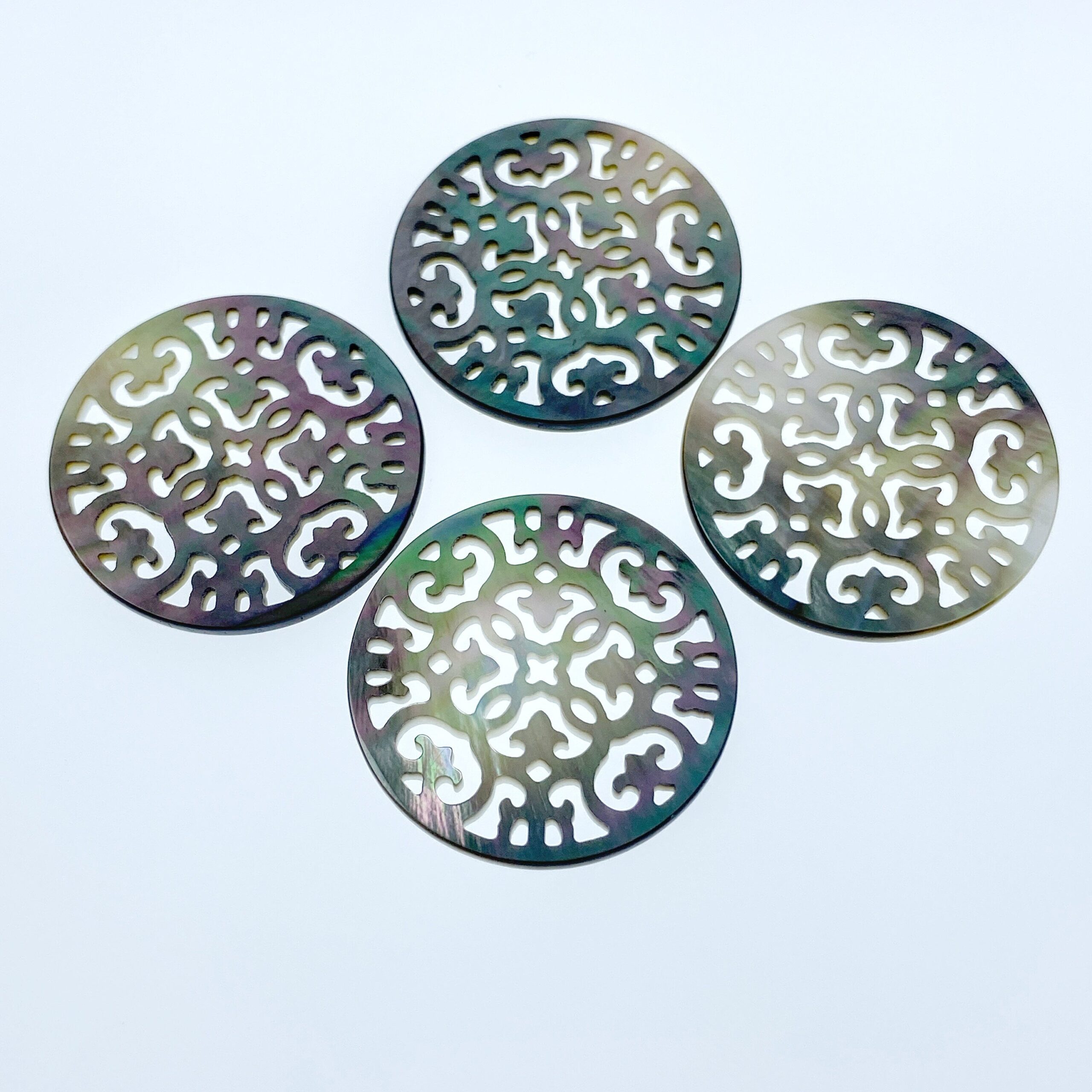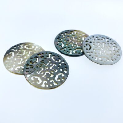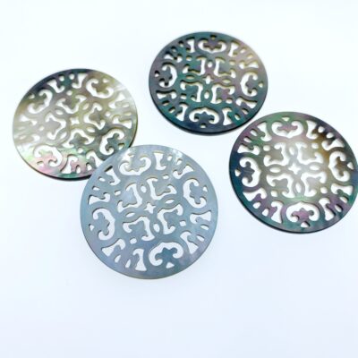 2pc Filigree Round Beads Black Mother Of Pearl Pendant Charms BM-0052 - Image 4