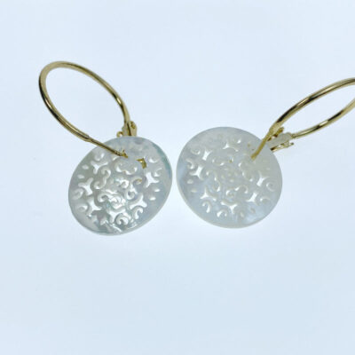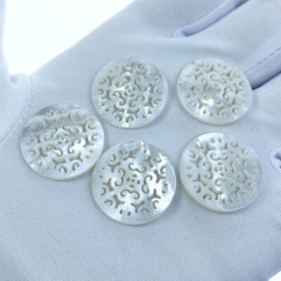 2pc Filigree Round Beads White Mother Of Pearl Pendants WM-0148