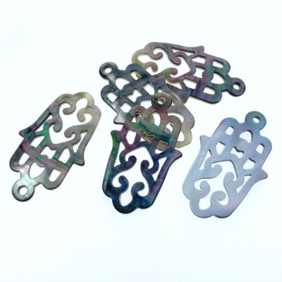 2pc Hamsa Hand Beads Black Mother Of Pearl 43mm Natural Carved BM-0087