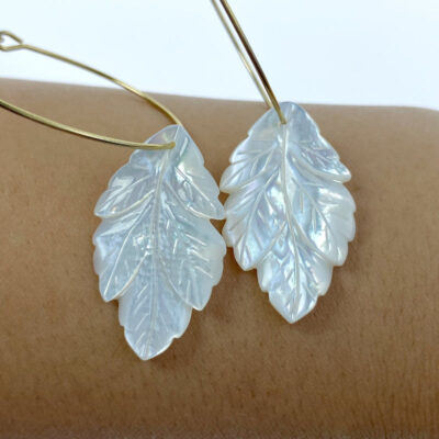 2pc Leaf Beads White Mother of Pearl Hand Carved Leaf Pendants WM-0216 - Image 7
