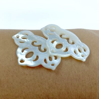2pc Lotus Leaf Beads White Mother of Pearl Filigree WM-0088 - Image 3