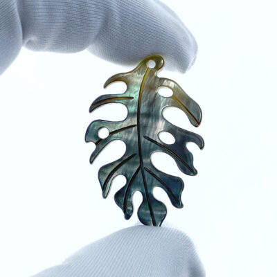 2pc Monstera Leaf Beads Black Mother Of Pearl Hand Carved BM-0005 - Image 6