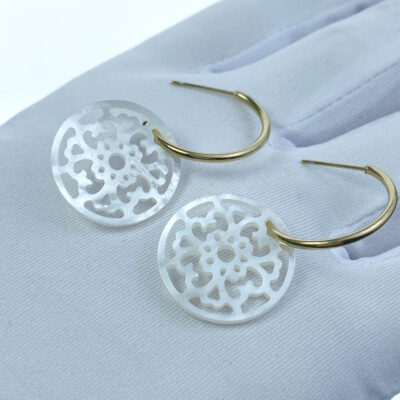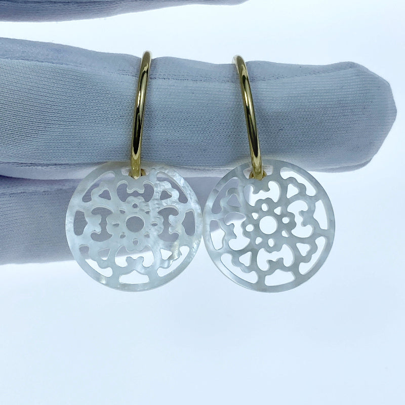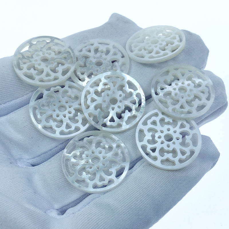 2pc Mother Of Pearl Filigree Beads Pendants 20mm Organic Hand Made For Diy Jewelry Earring Making Natural Hand Carved WM-0157
