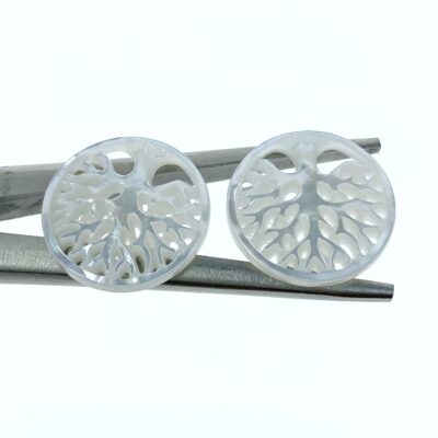 2pc Tree Of Life Beads White Mother of Pearl Pendants WM-0072