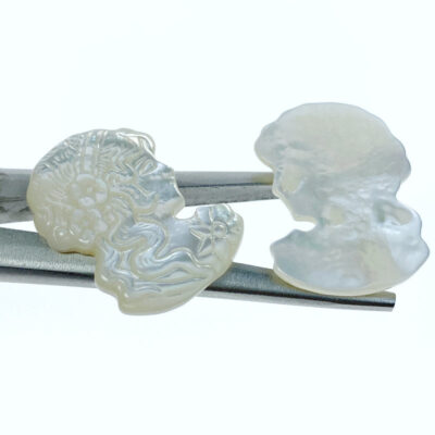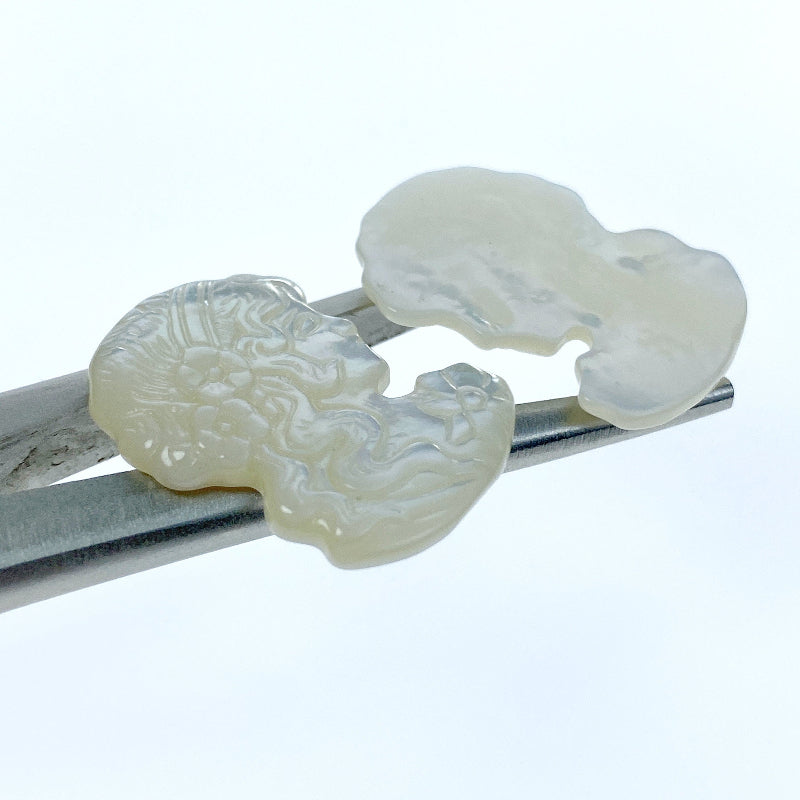 2pc Victorian Cabochon Beads White Mother of Pearl Hand Carved