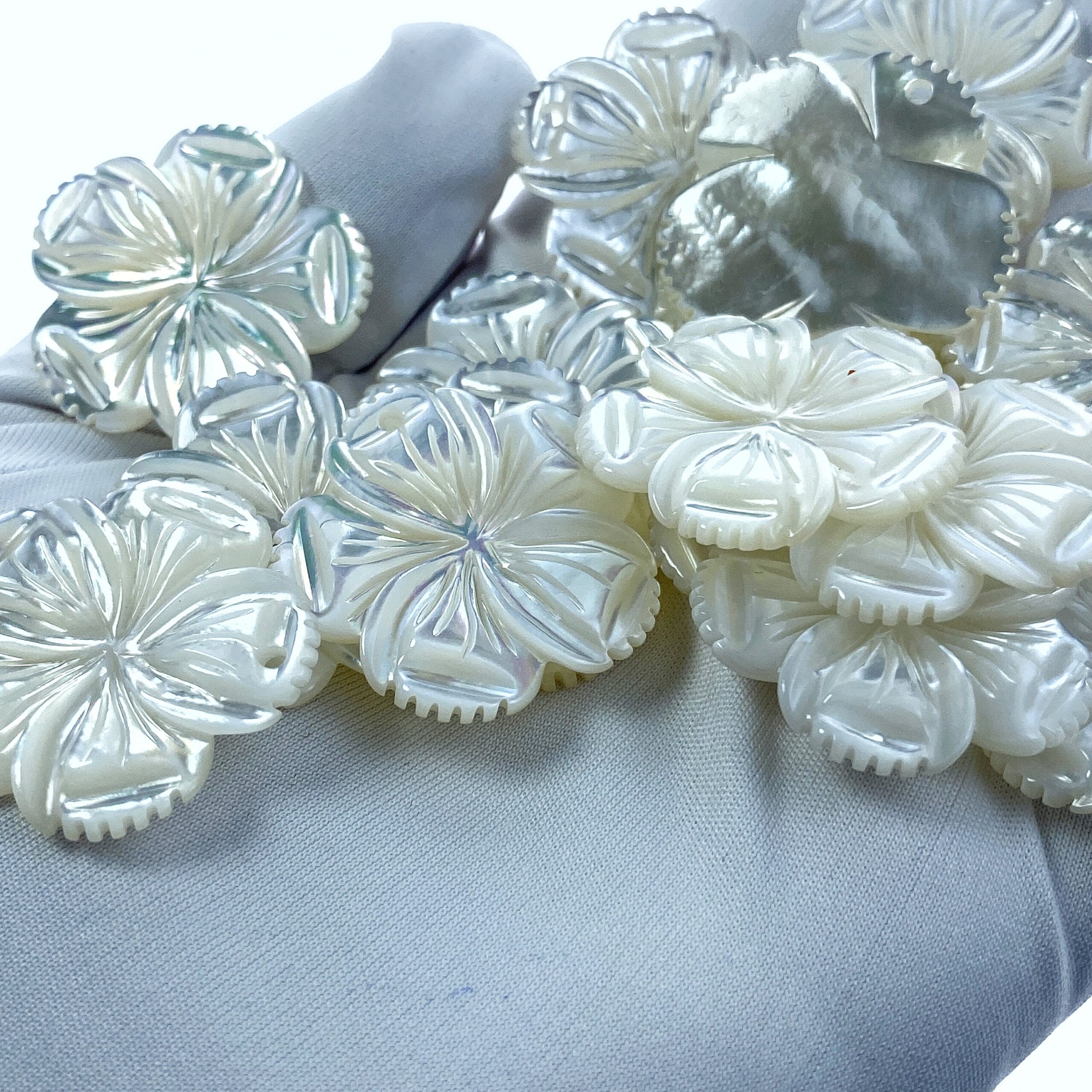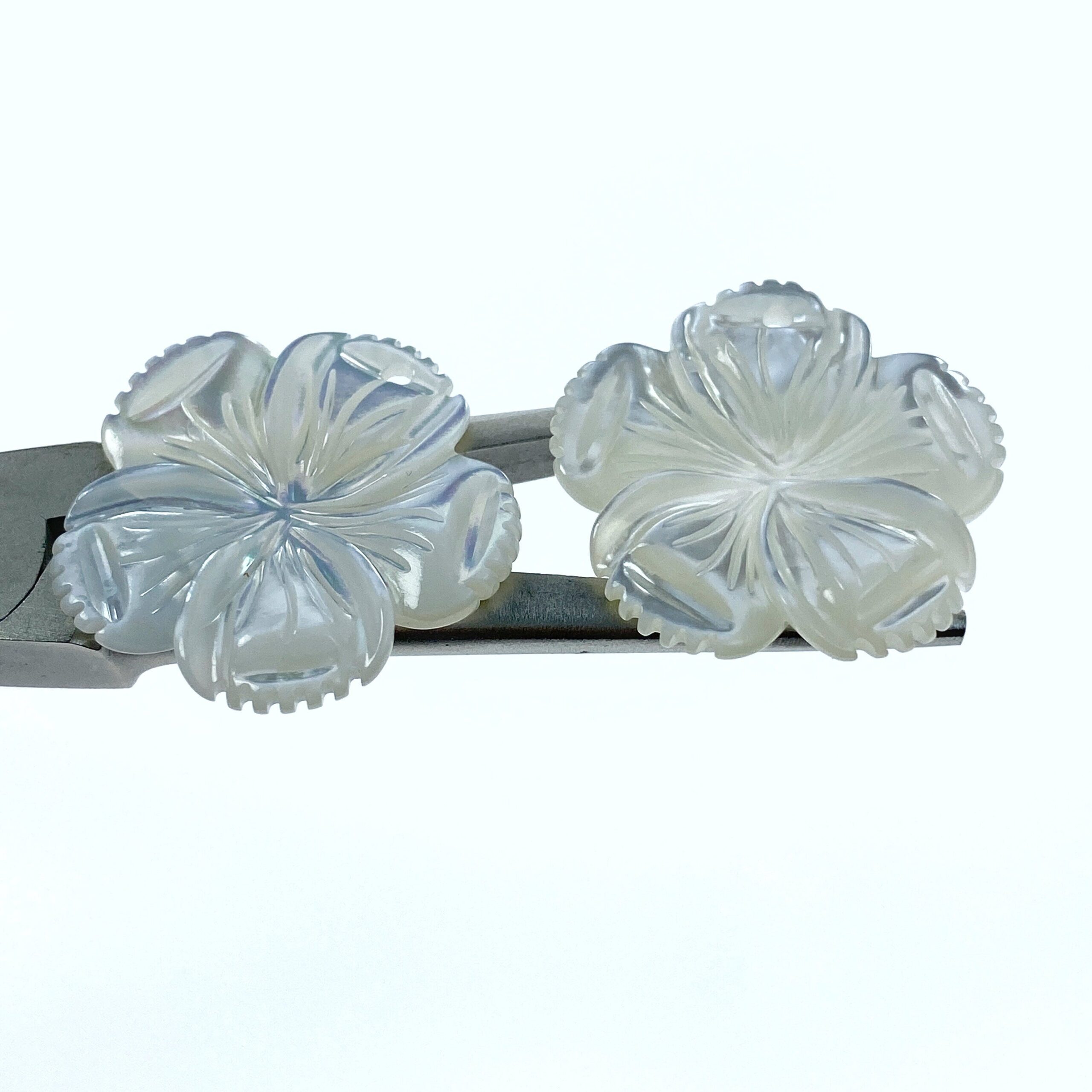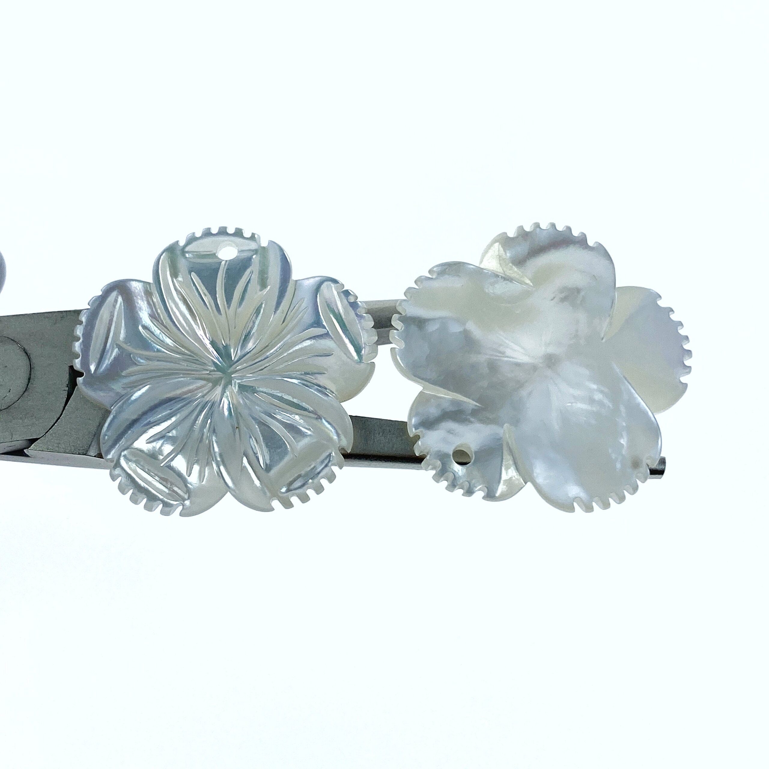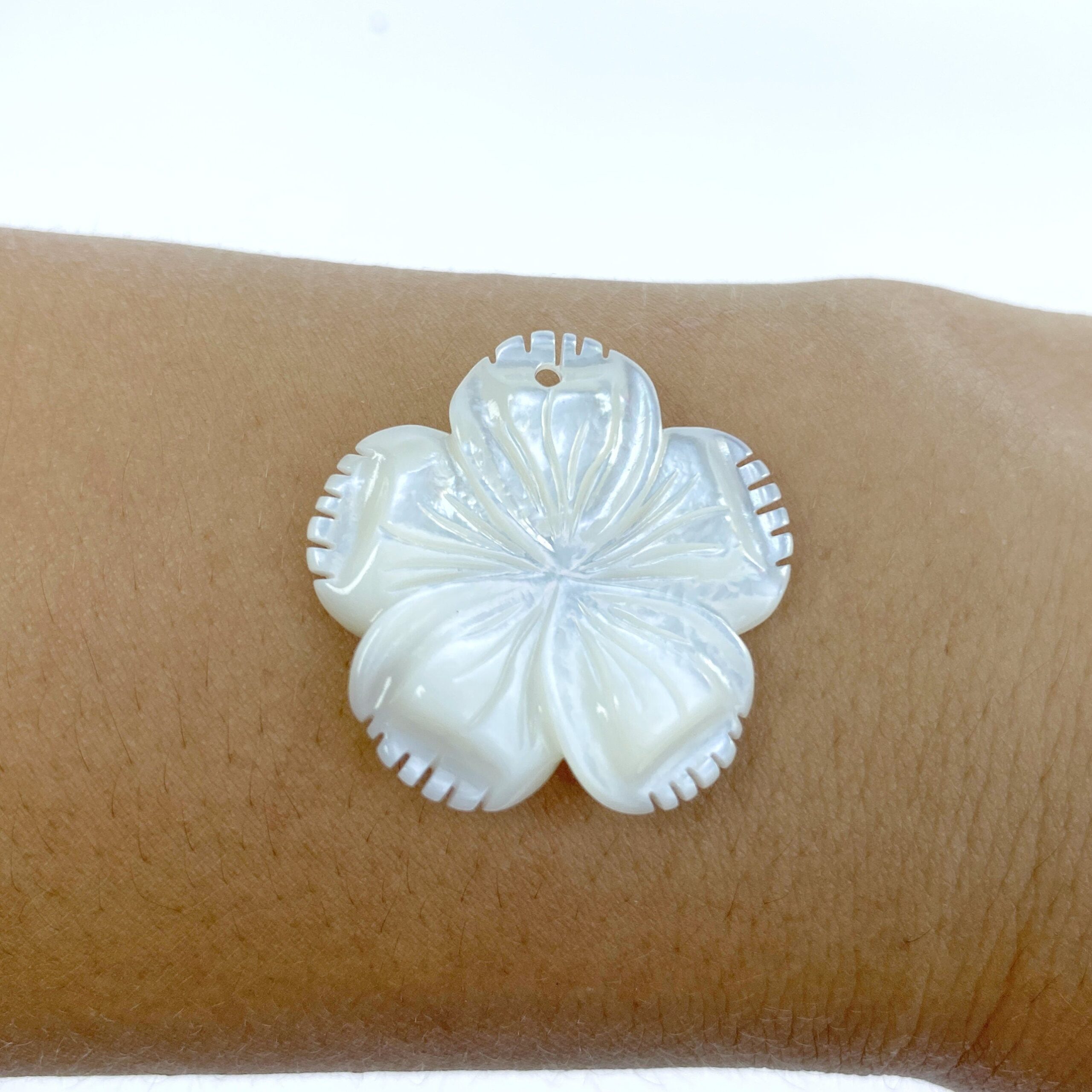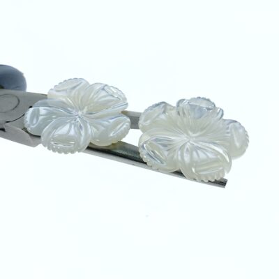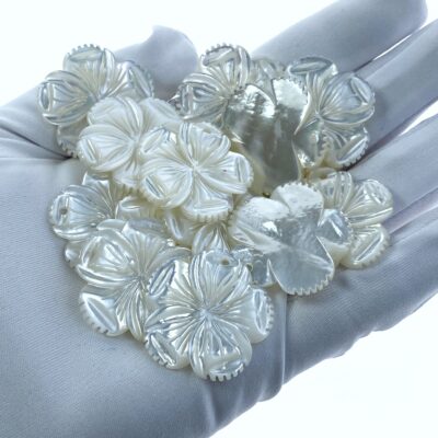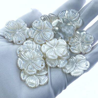 4pc 28mm Hand Carved White Mother of Pearl 5-petal Flower Pendants WM-0205