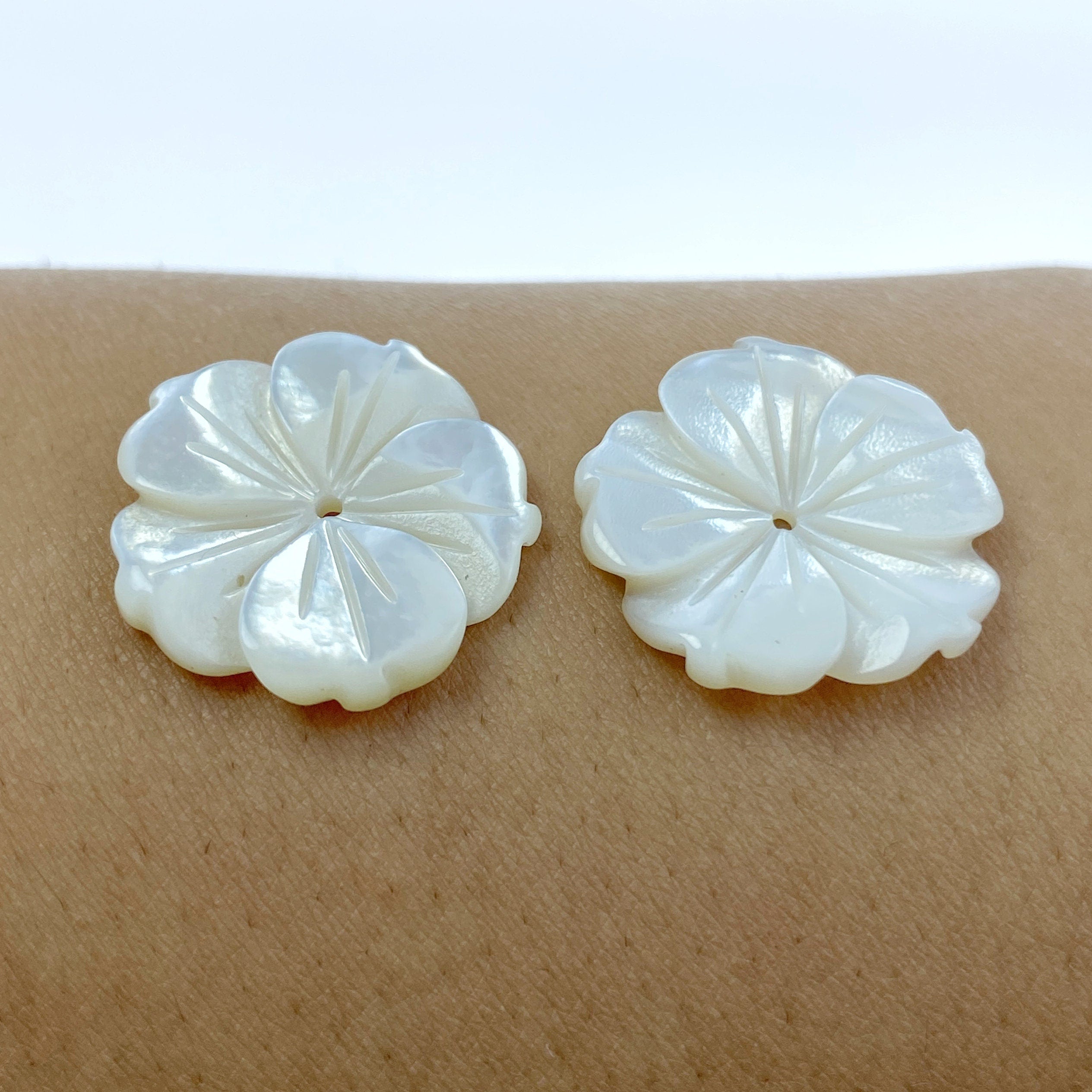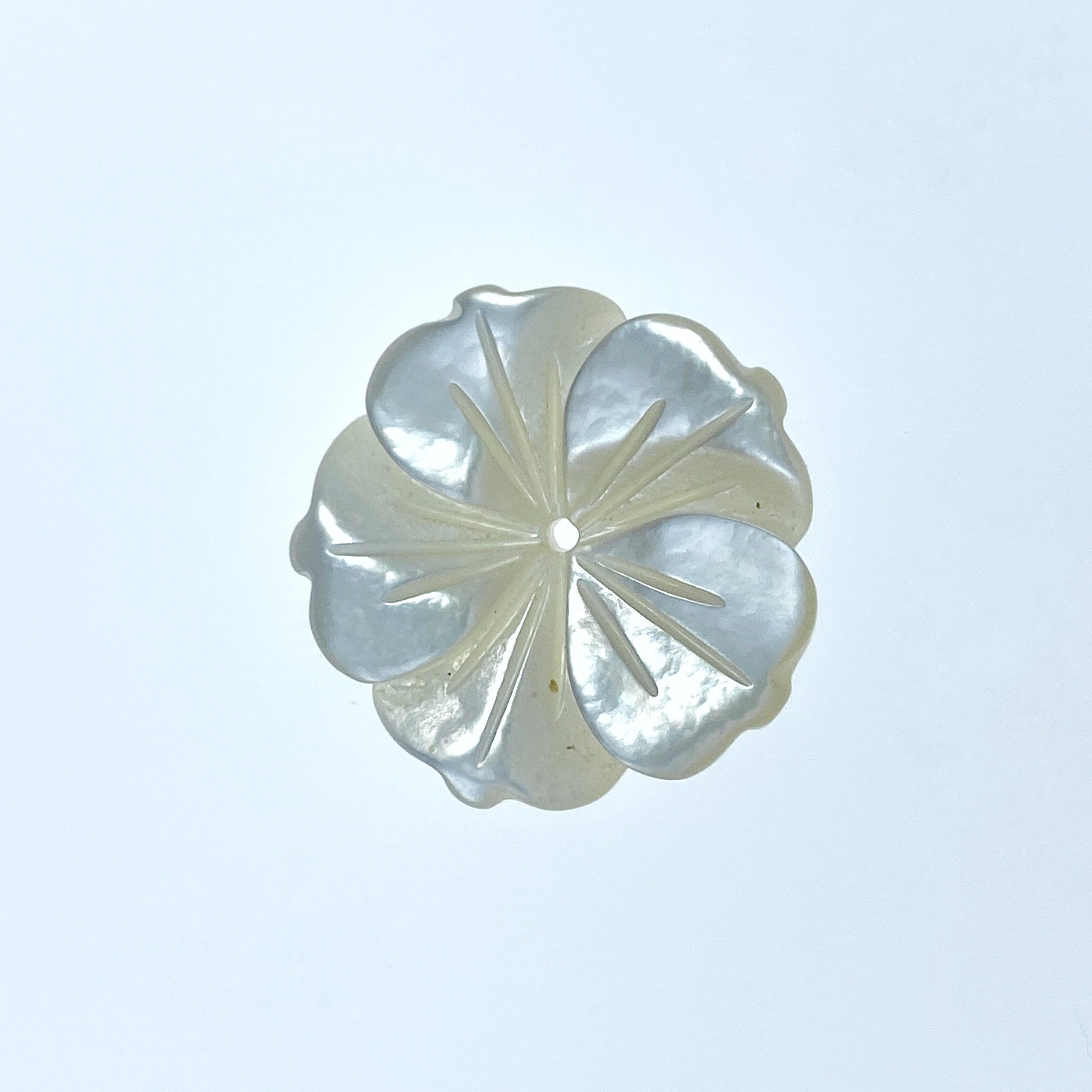 6pc 25mm Hand Carved White Mother of Pearl 5-petal Flower Beads WM-0162Alternative view of 6pc 25mm Hand Carved White Mother of Pearl 5-petal Flower Beads WM-0162