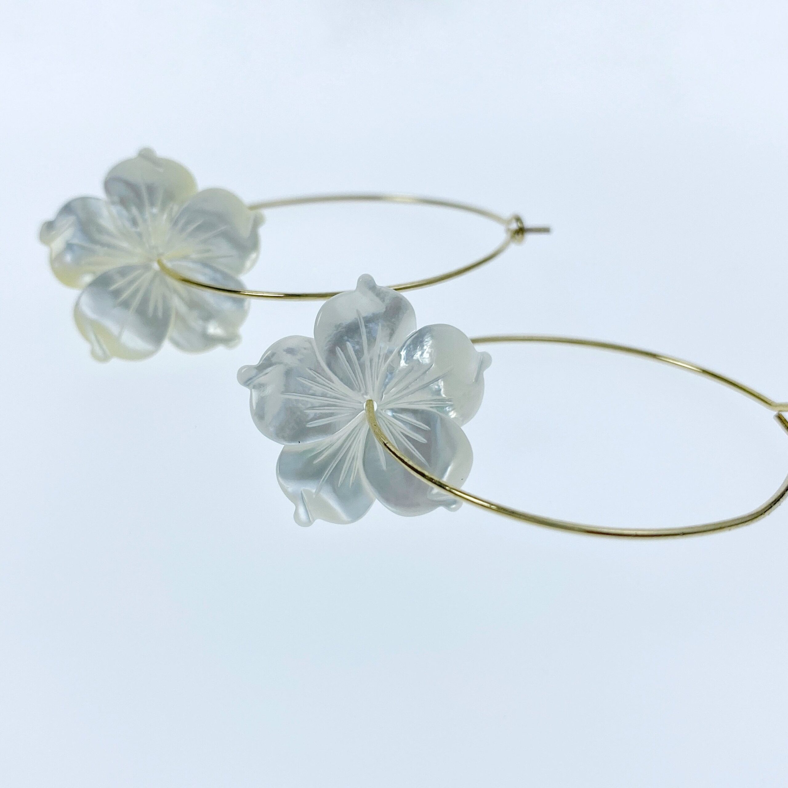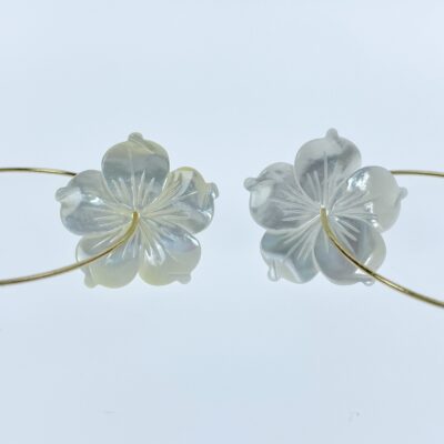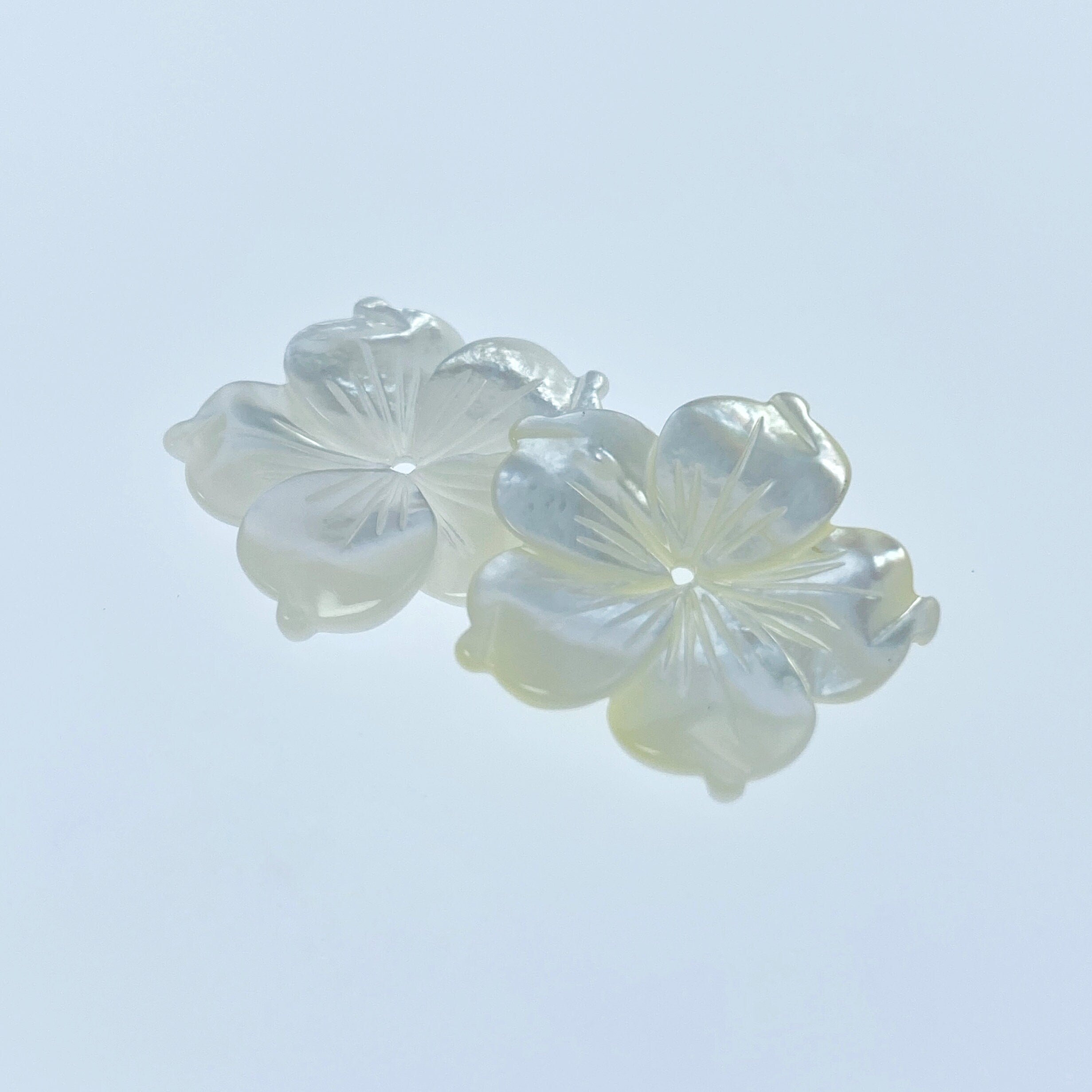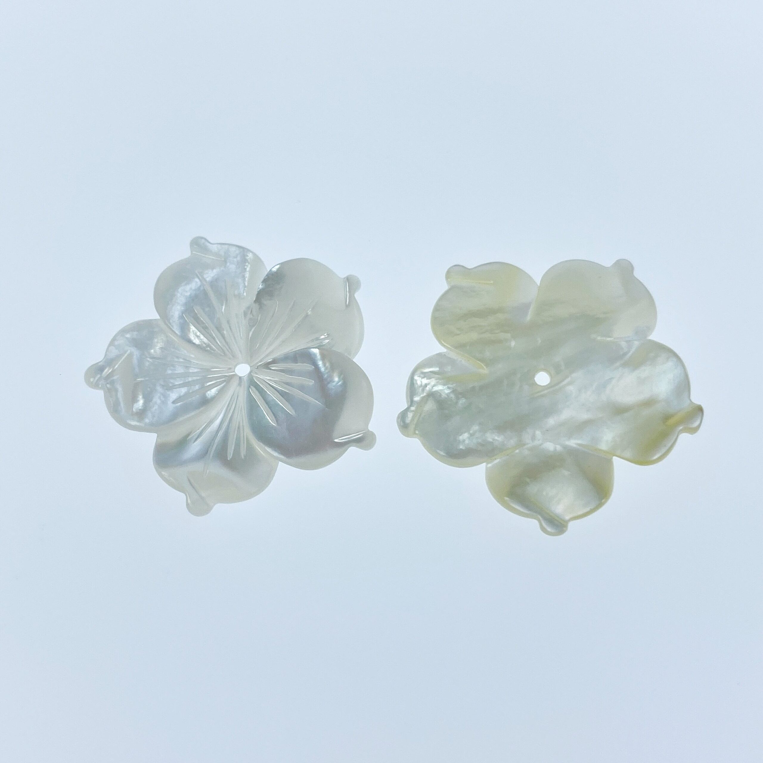 6pc 20mm Hand Carved White Mother of Pearl Bauhinia Flower Beads WM-0127