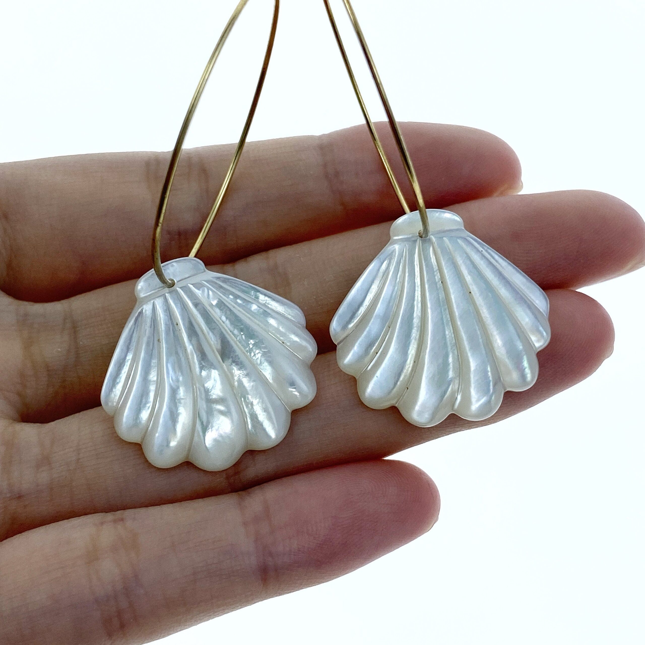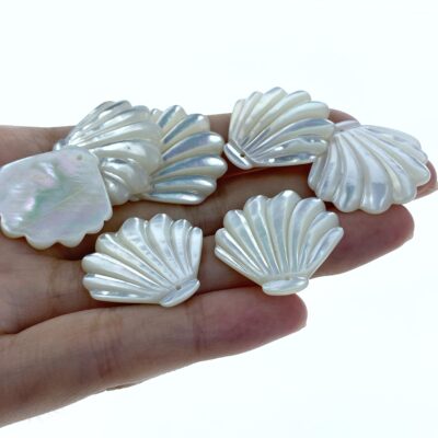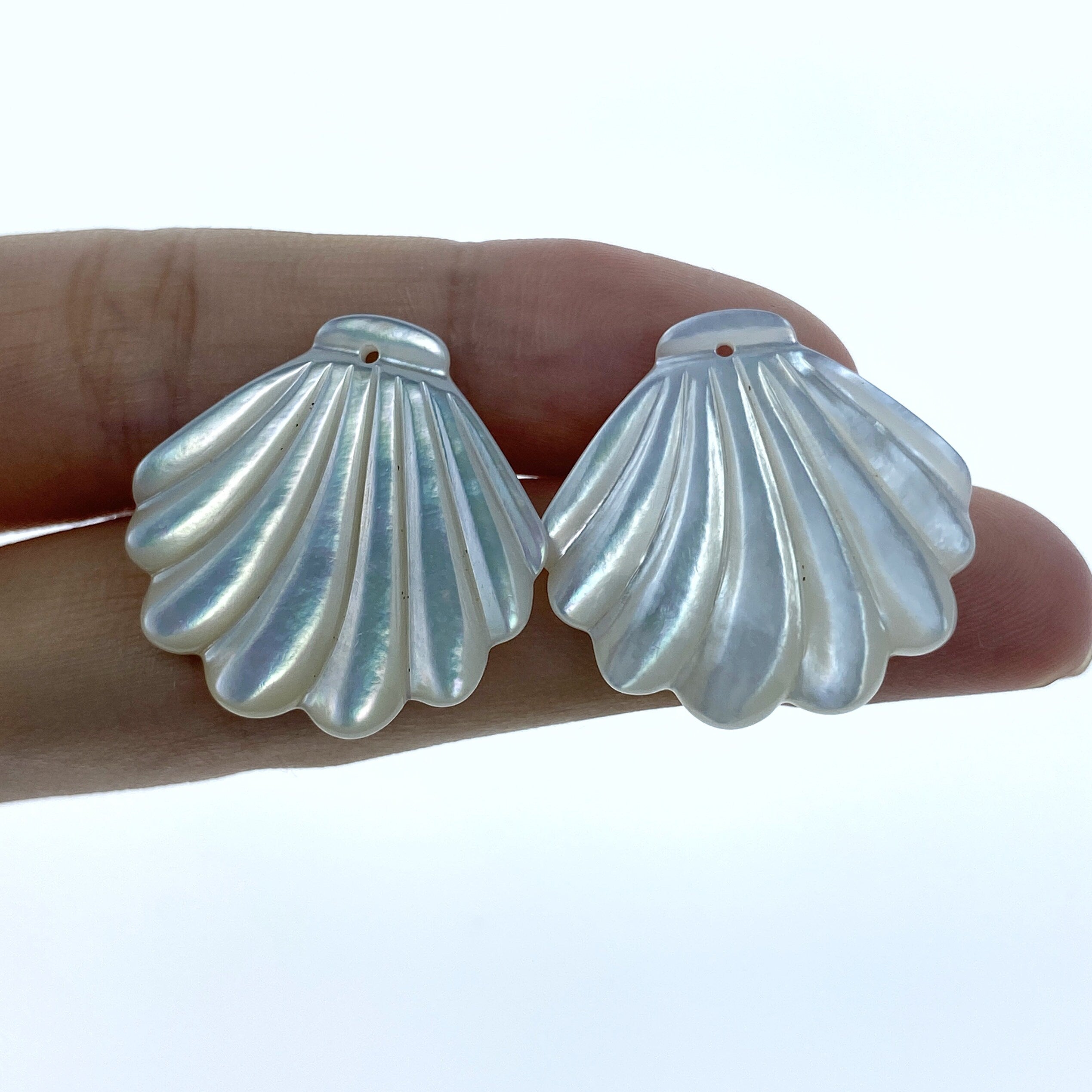 6pc 24mm x 25mm Hand Carved White Mother of Pearl Clam Shape Pendants