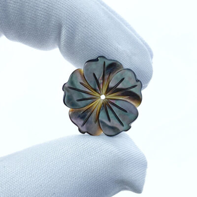6pc Bauhinia Flower Beads Black Mother Of Pearl Charms BM-0076 - Image 7