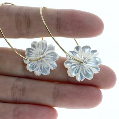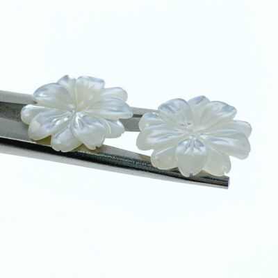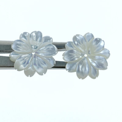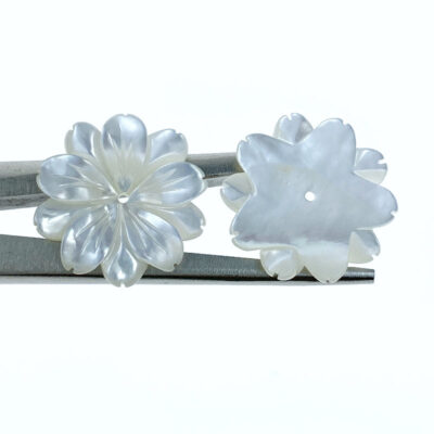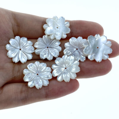 6pc Daisy Flower Beads White Mother Of Pearl Hand Carved WM-0023