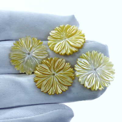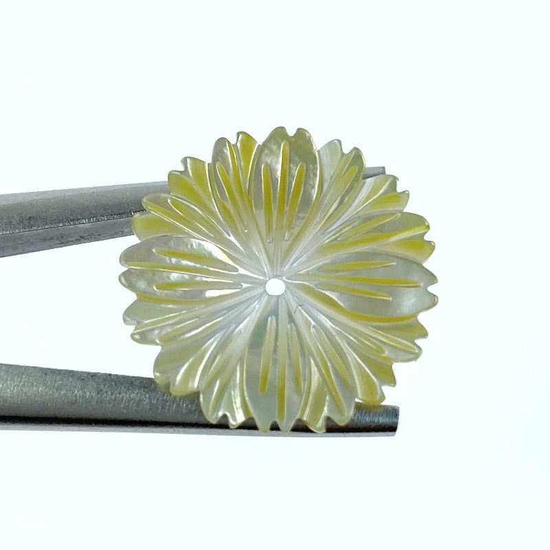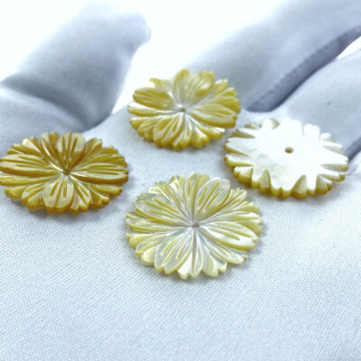 6pc Daisy Flower Beads Yellow Mother Of Pearl Hand Carved YM-0008