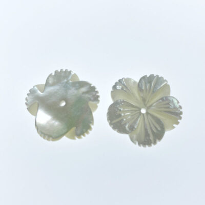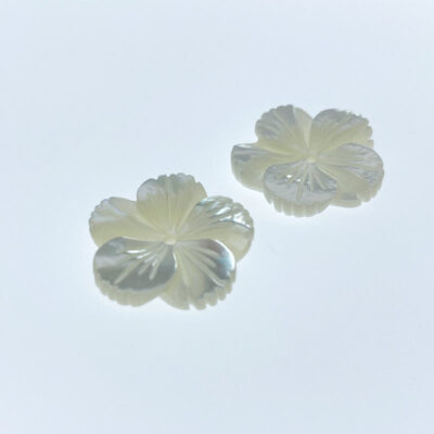 6pc Flower Beads White Mother Of Pearl Hibiscus Tropical Flower Hand Carved WM-0184