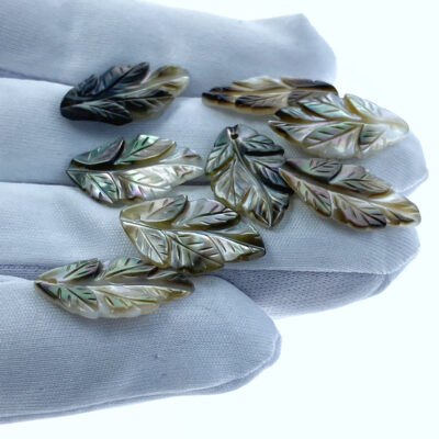 6pc Leaf Beads Black Mother Of Pearl Hand Carved BM-0115 - Image 7