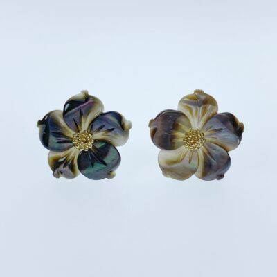 Bauhinia Flower Beads Black Mother Of Pearl 15mm BM-0072