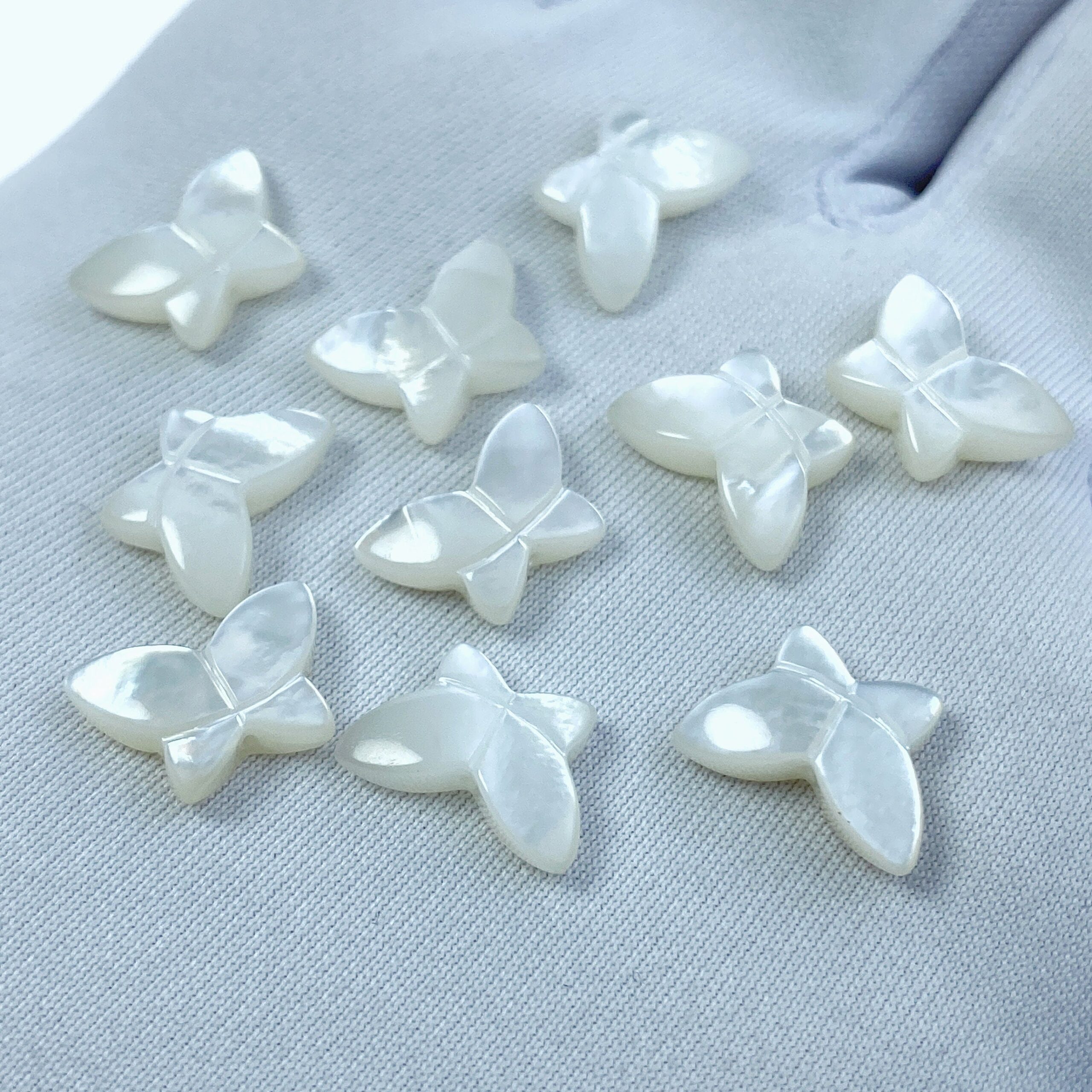 4pc 10mm x 12mm Organic Hand Carved White Mother of Pearl Butterfly Beads WM-0142