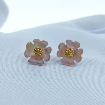 10pc Pink Mother Of Pearl Flower Beads 10mm Hand Carved Flower Charms For Earrings Jewelry Making Minimalistic Cute Design Natural PM-0001