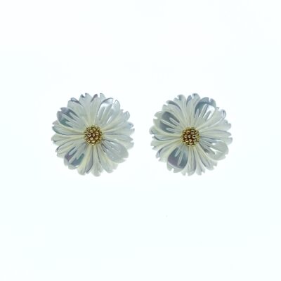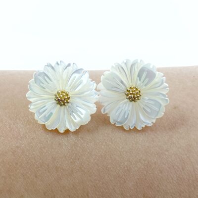 10pc Daisy Flower Beads White Mother Of Pearl 15mm Hand Carved WM-0098