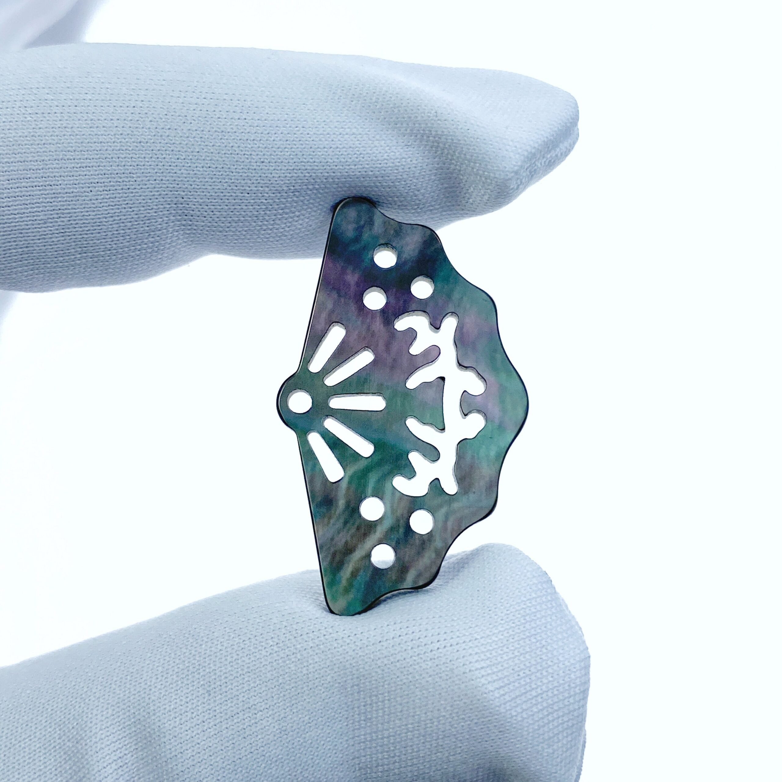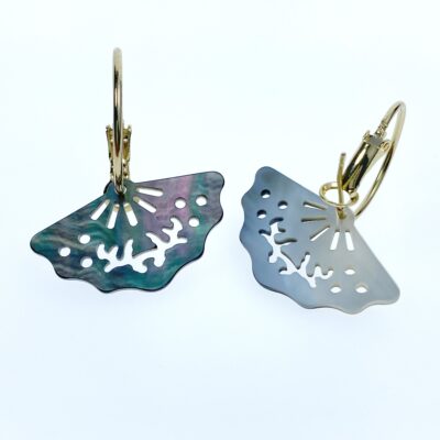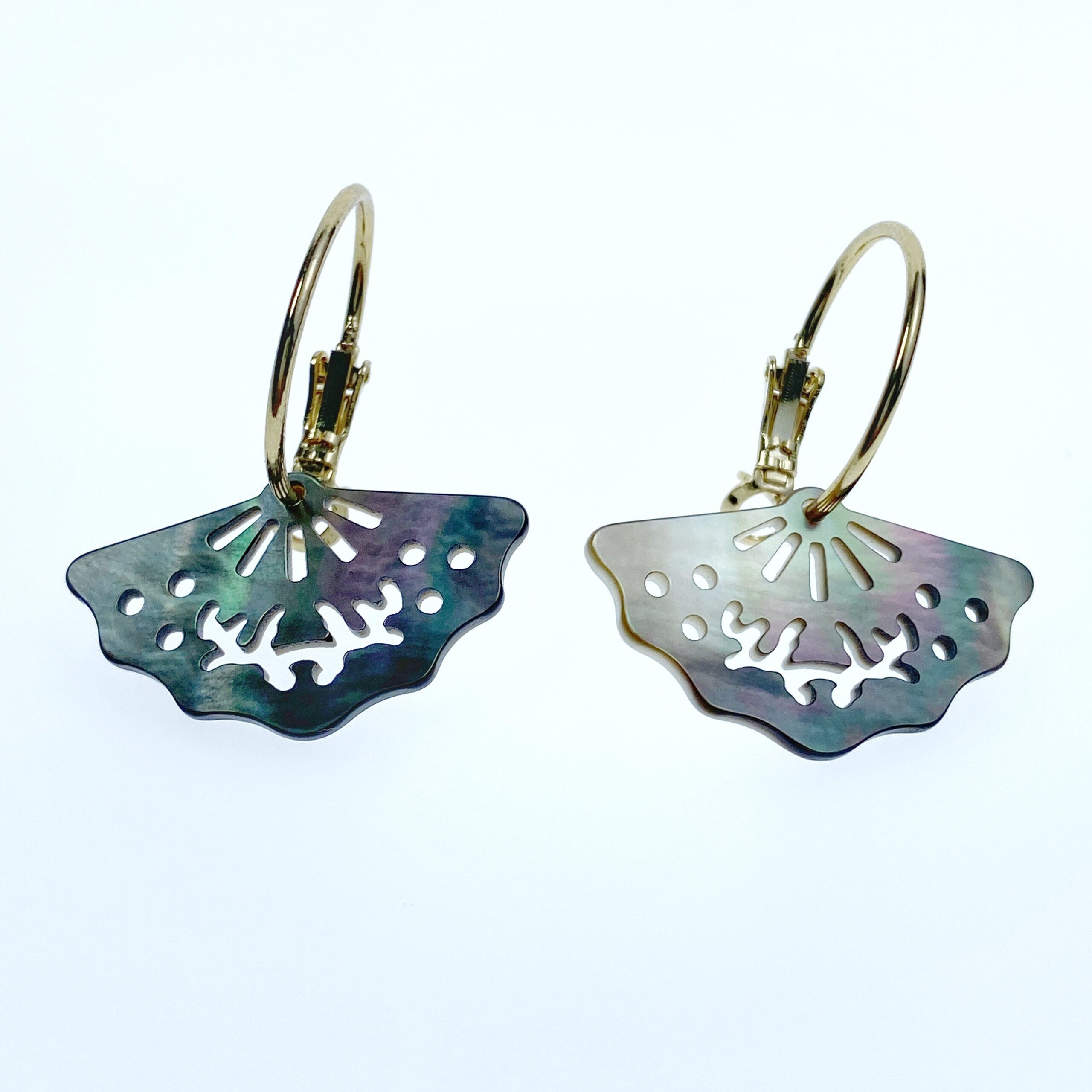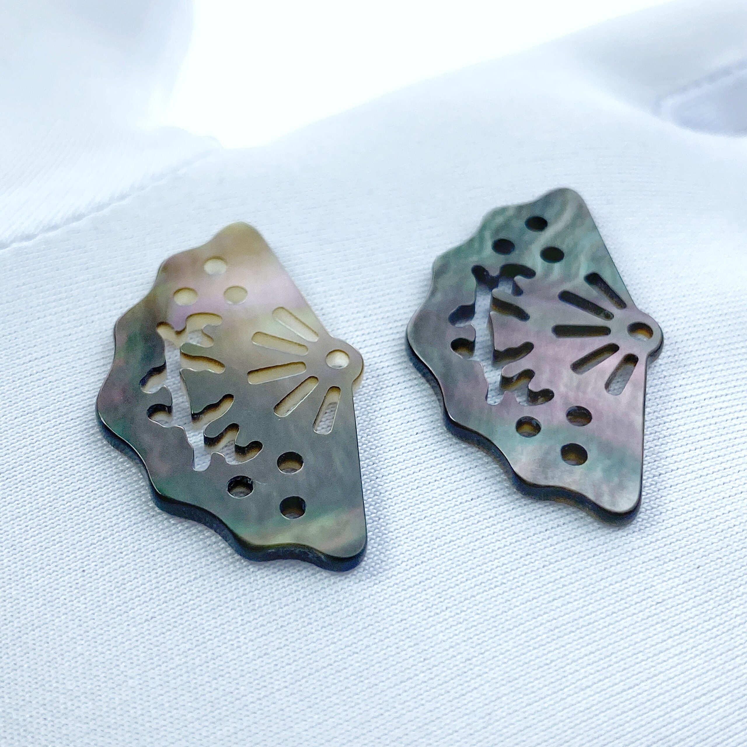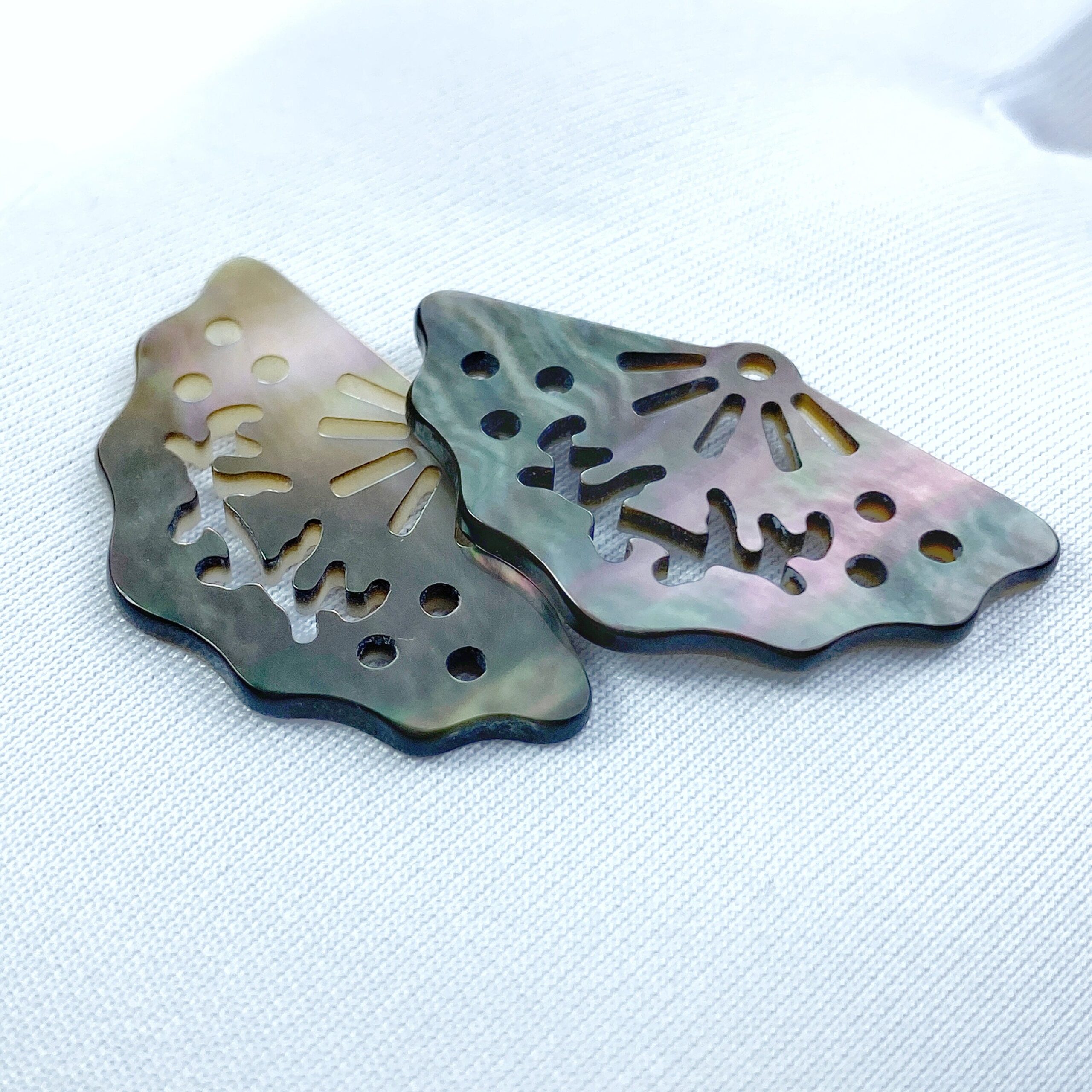 2pc 18mm x 30mm Natural Black Mother of Pearl Filigree Fan Shape Pendants BM-0095