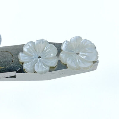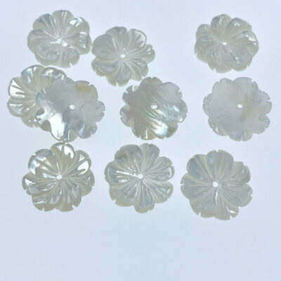 10pc Flower Beads White Mother Of Pearl 15mm Hand Carved WM-0131