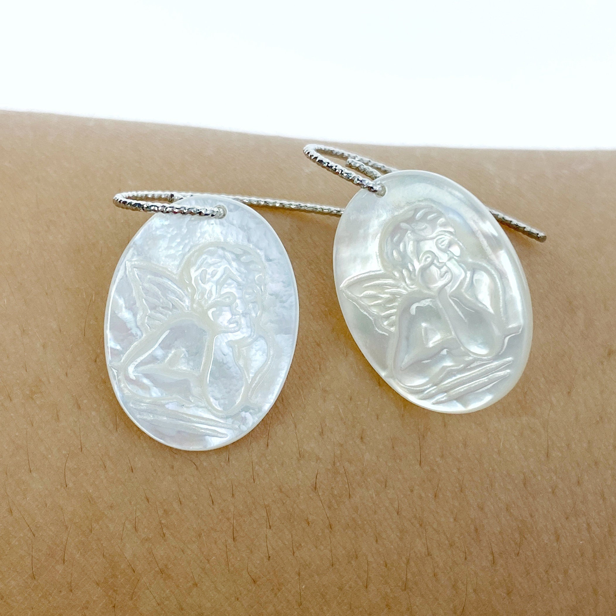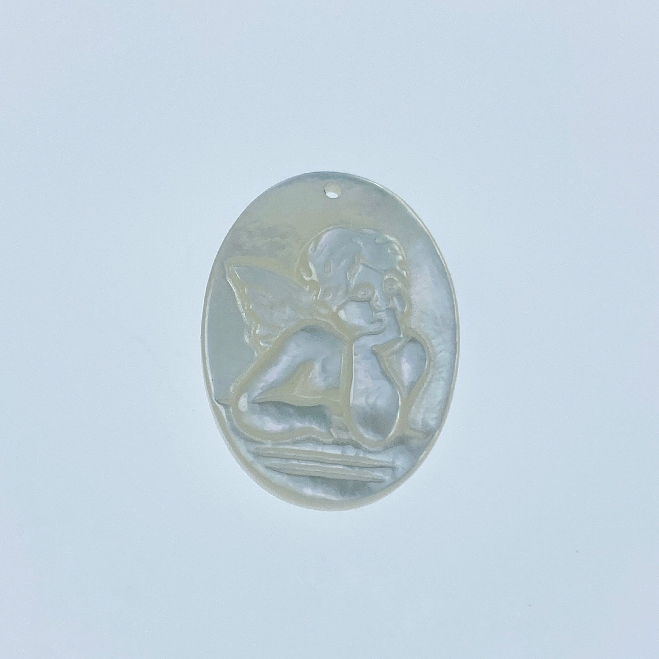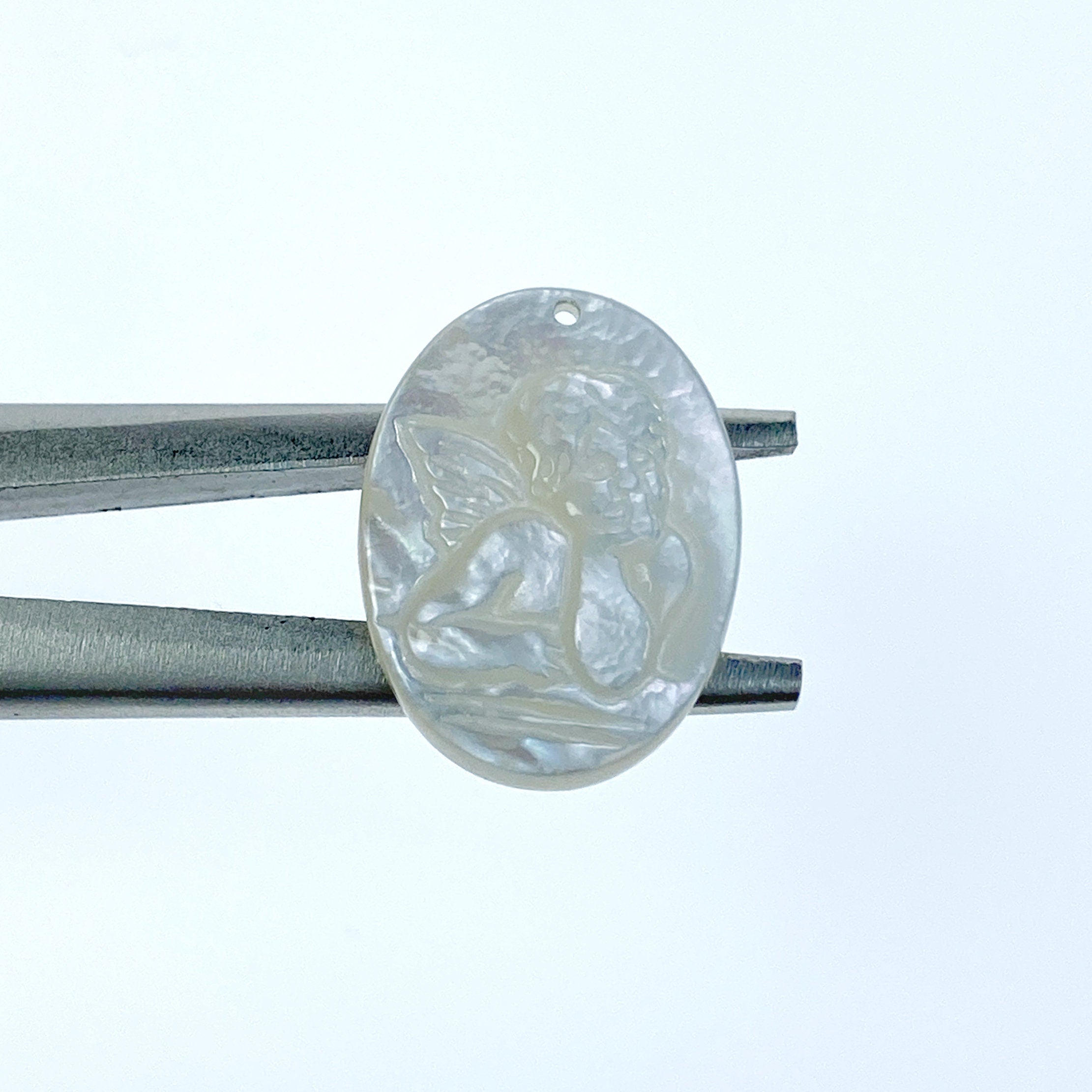 2pc 15mm x 20mm Organic White Mother of Pearl Guardian Angel Oval Pendants WM-0116 - Image 6