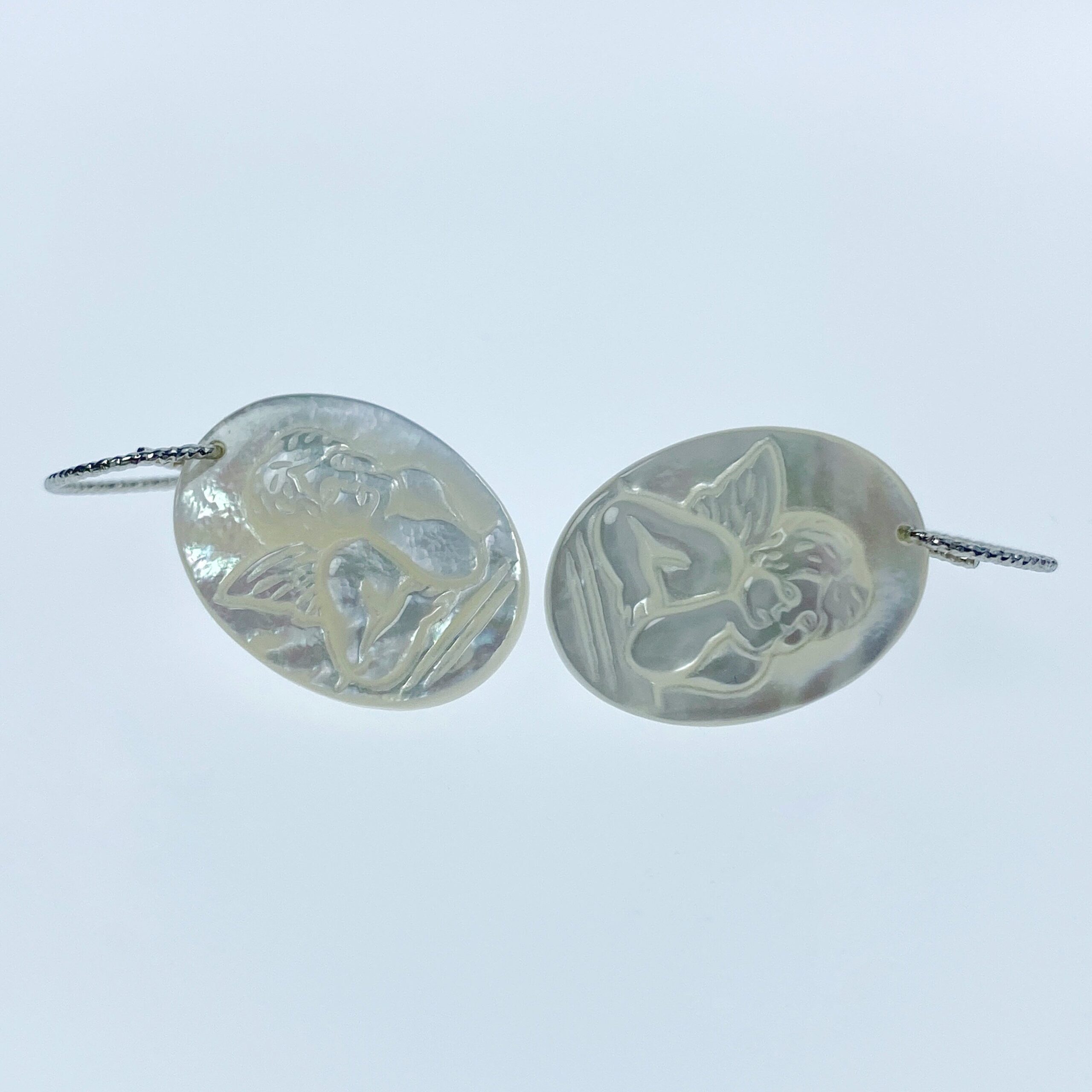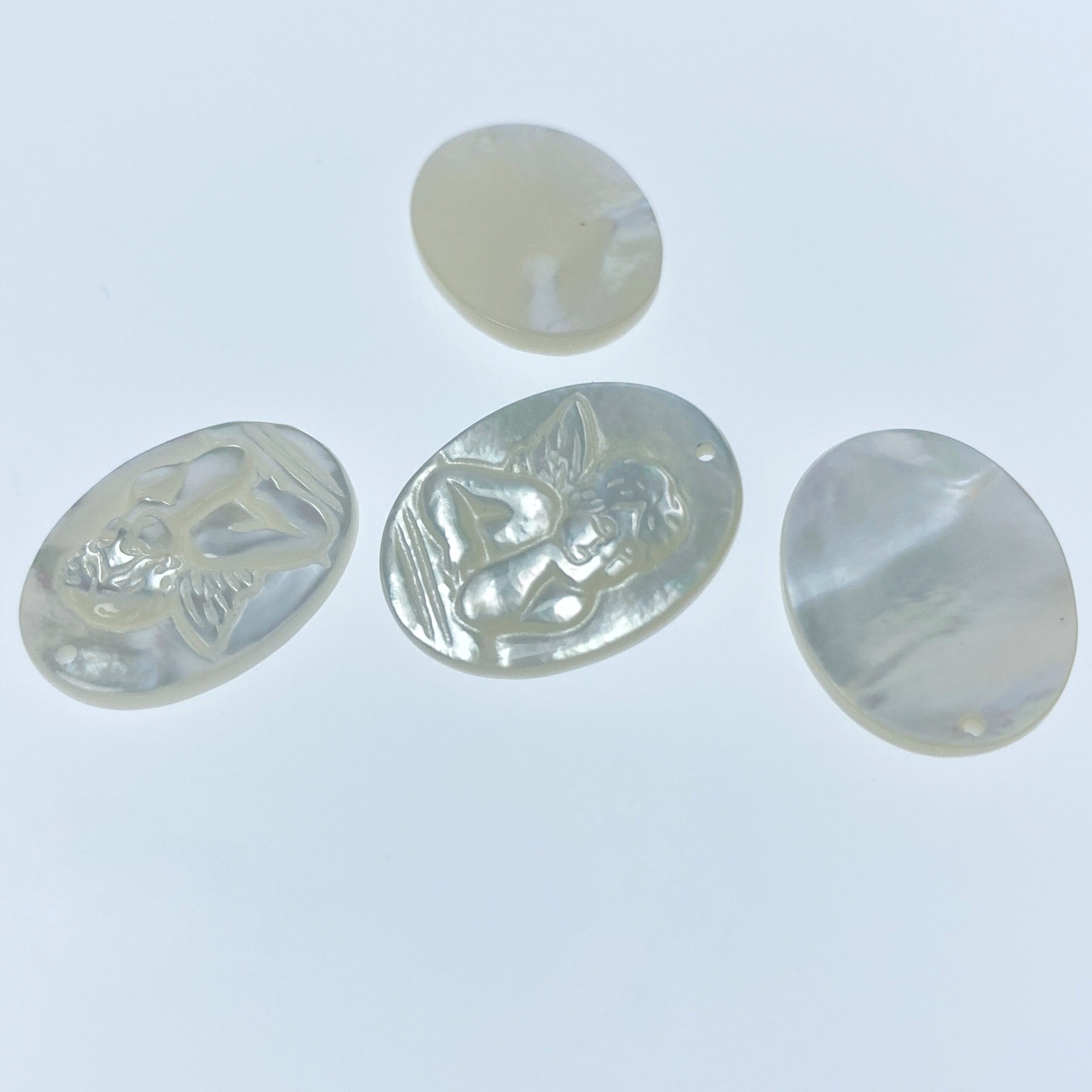 2pc 15mm x 20mm Organic White Mother of Pearl Guardian Angel Oval Pendants WM-0116 - Image 4