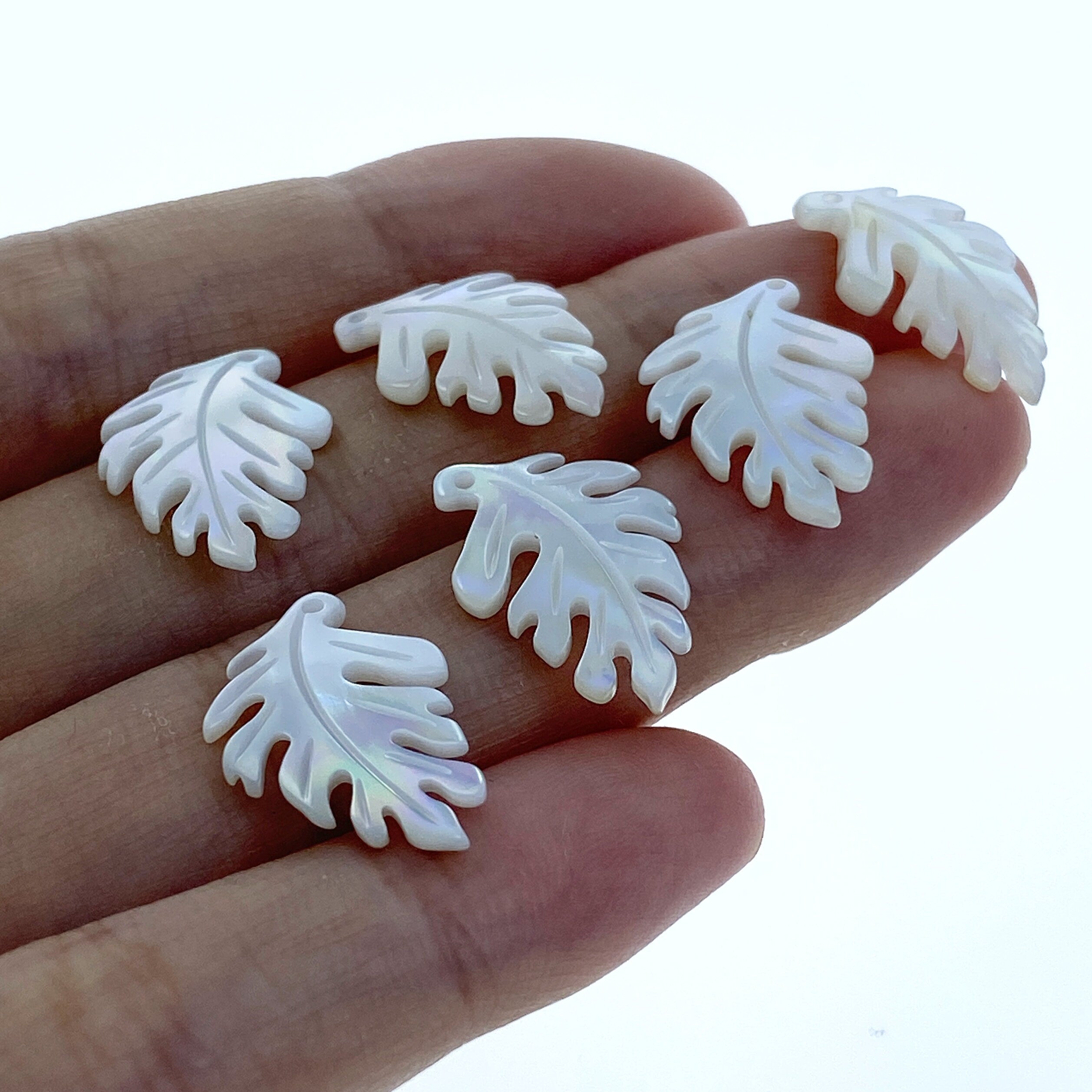 2pair 12mm x 18mm White Mother of Pearl Monstera Leaf Pendants WM-0052 - Image 6