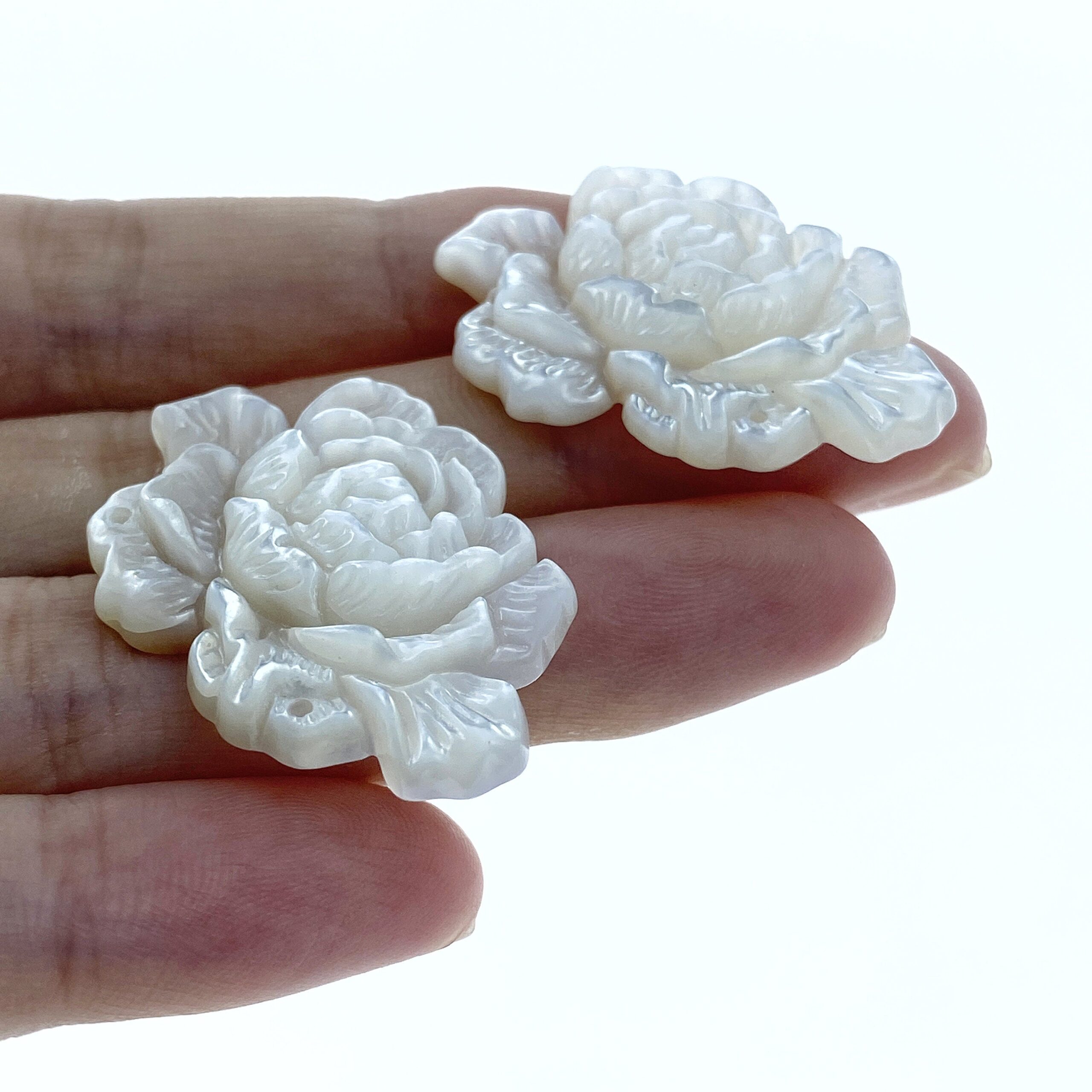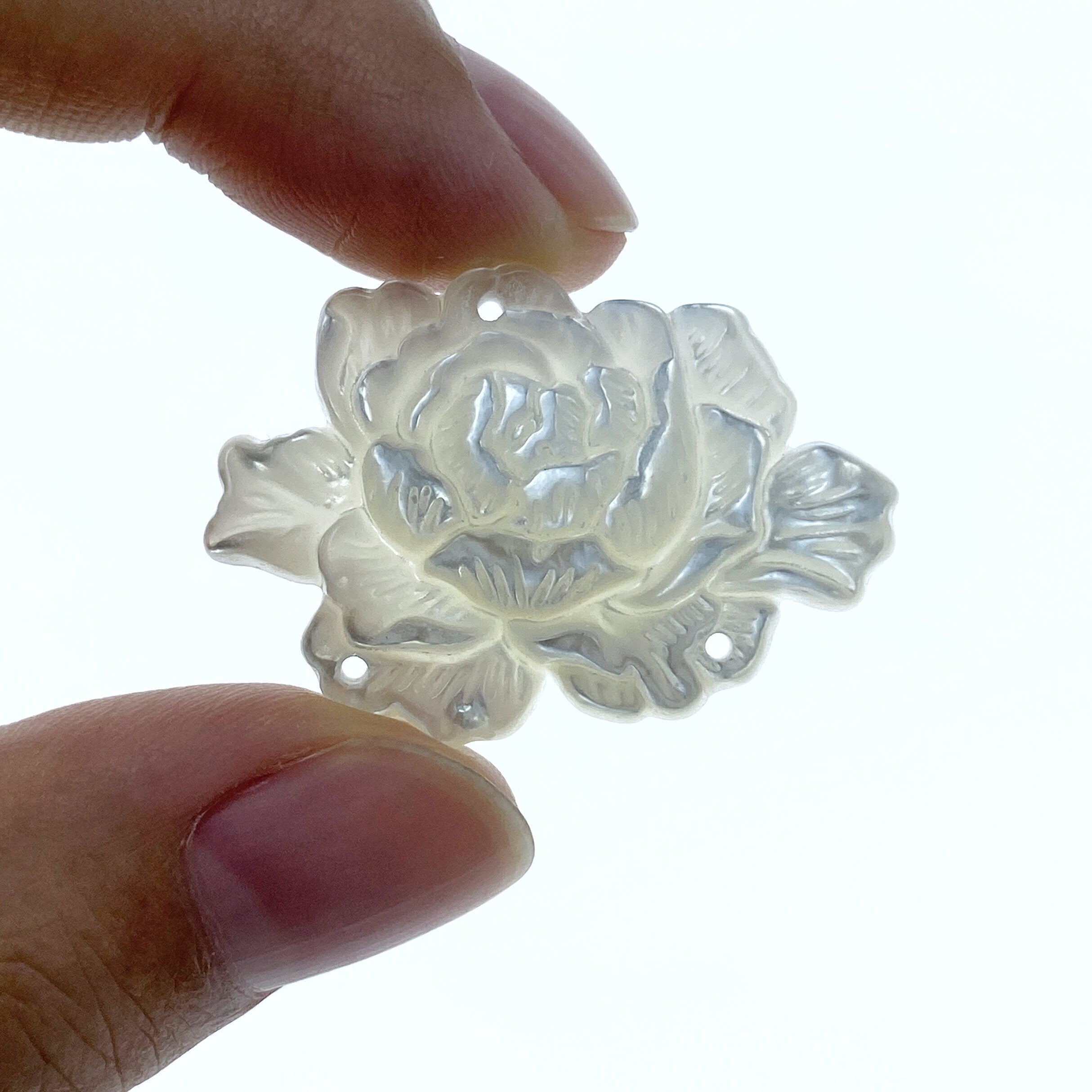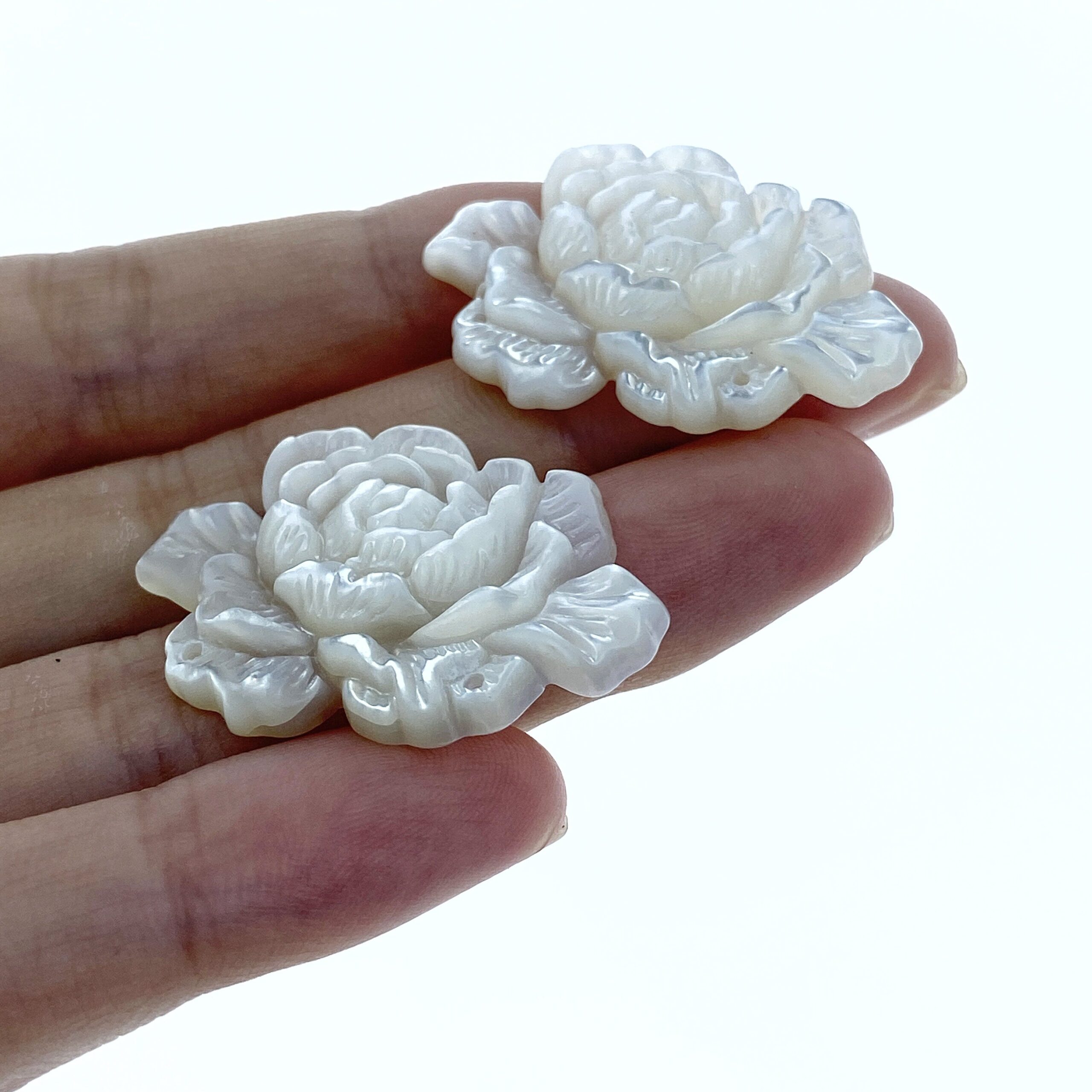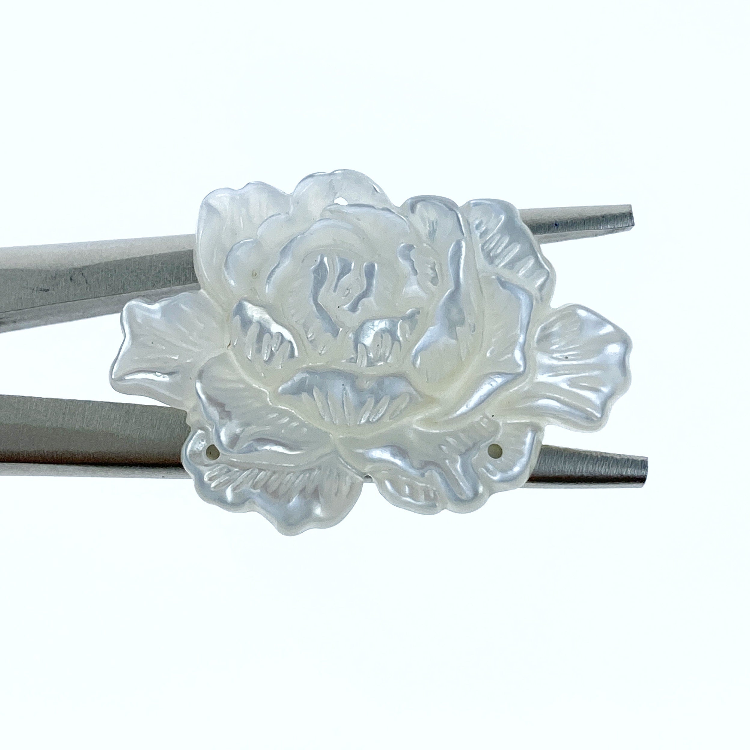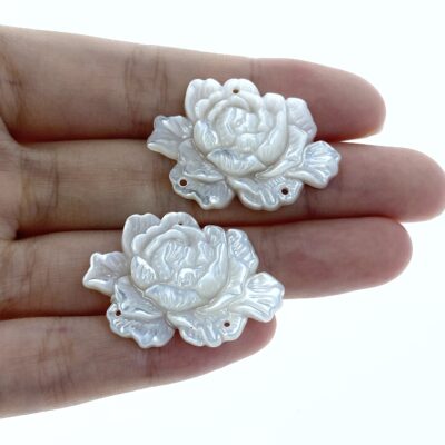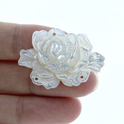 Peony Flower Connector Bead White Mother Of Pearl Hand Carved WM-0041