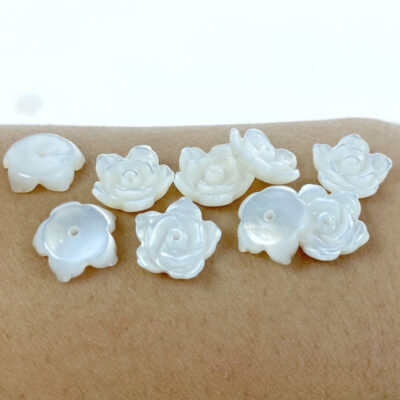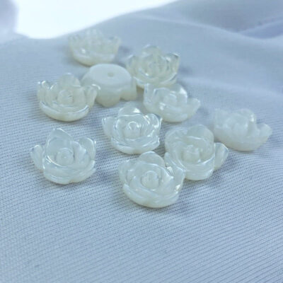10pc Rose Flower Beads White Mother Of Pearl 10mm Hand Carved WM-0210