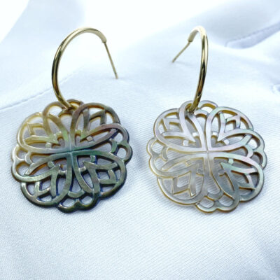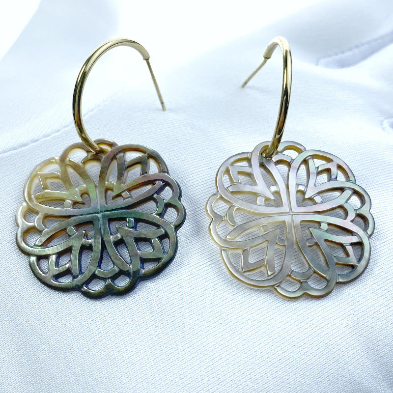 • 2pc Clover Cut Filigree Round Beads Black Mother Of Pearl 25mm BM-0099 2pc Clover Cut Filigree Round Beads Black Mother Of Pearl 25mm BM-0099 $9.29