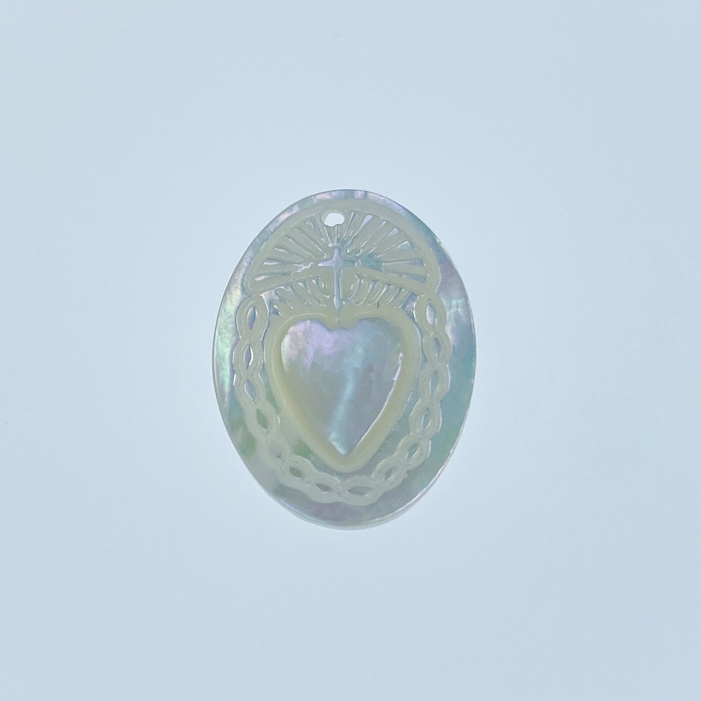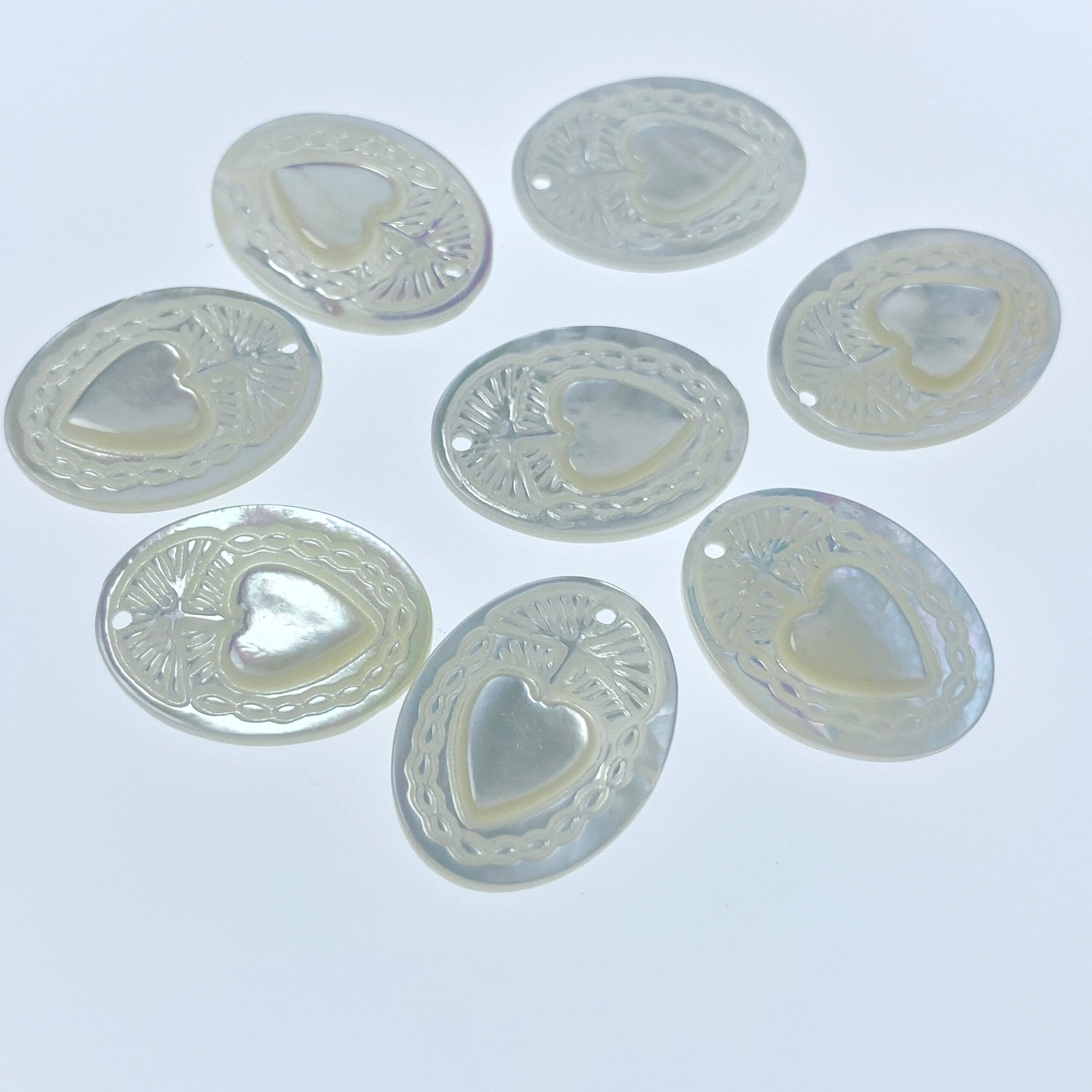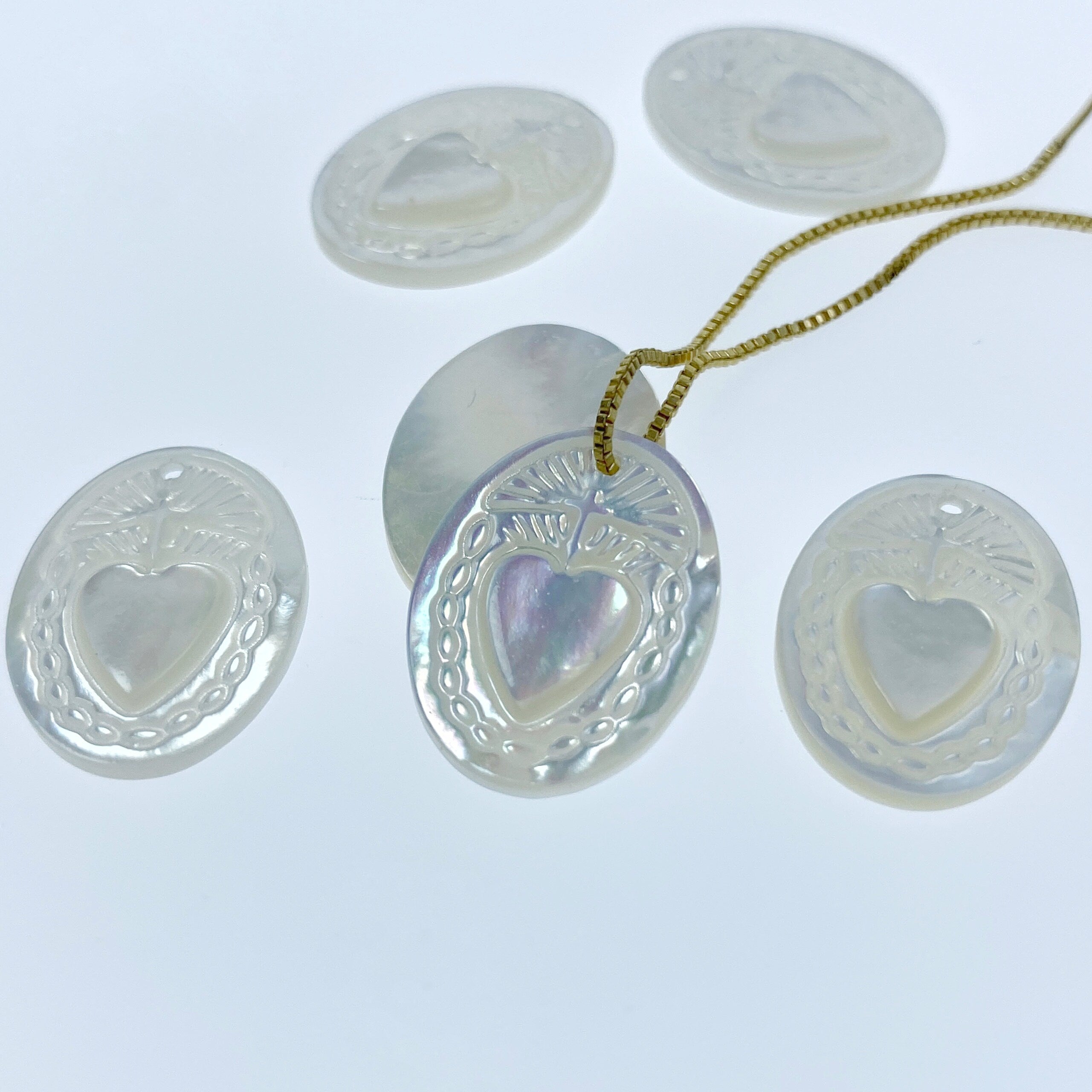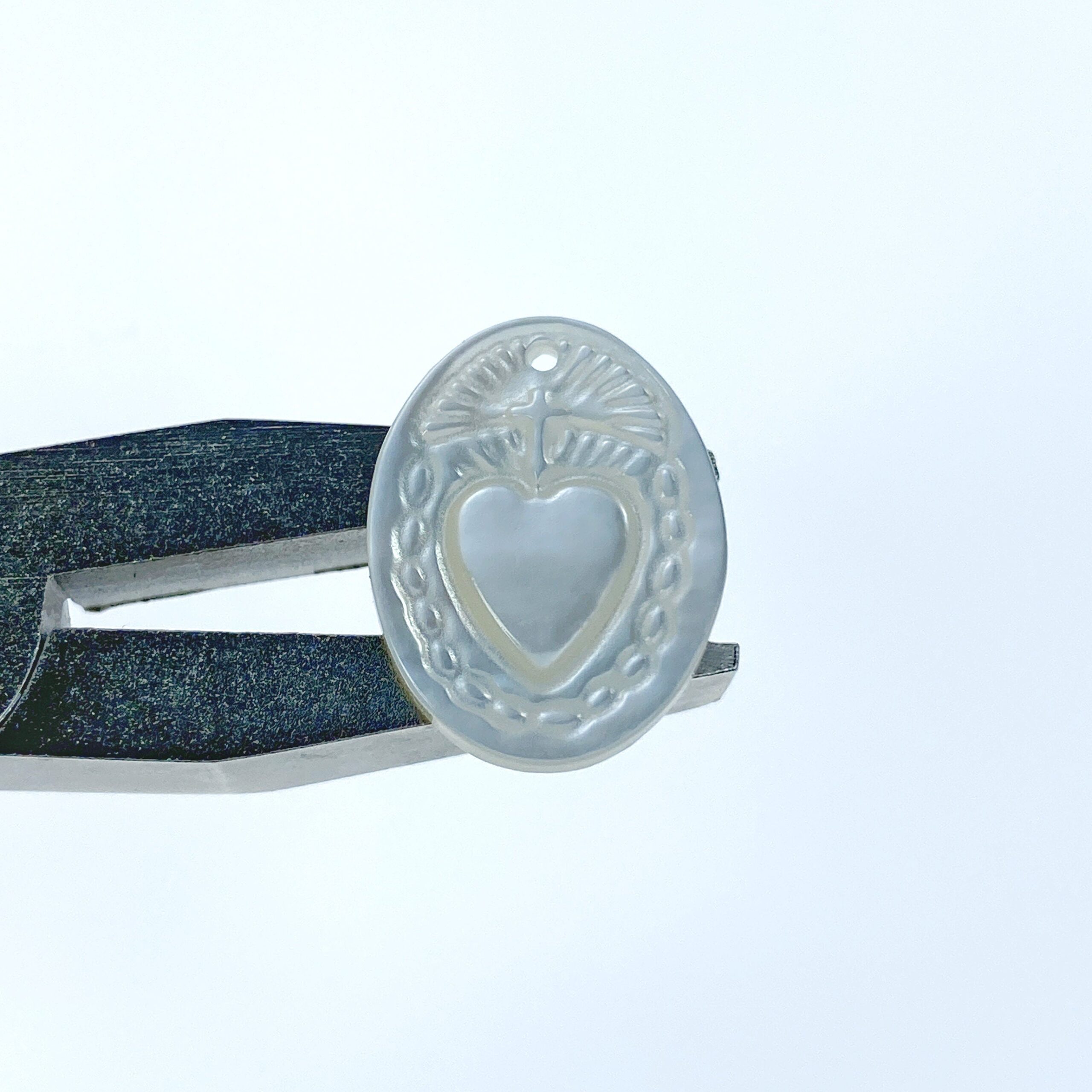 2pc Sacred Heart Mother Of Pearl Beads 20mm Organic White Pearl Jesus Heart Oval Pendant Charms For DIY Jewelry Making Hand Carved WM-0171