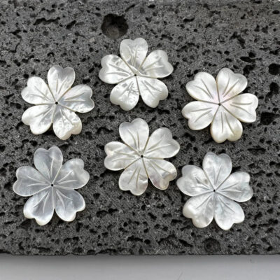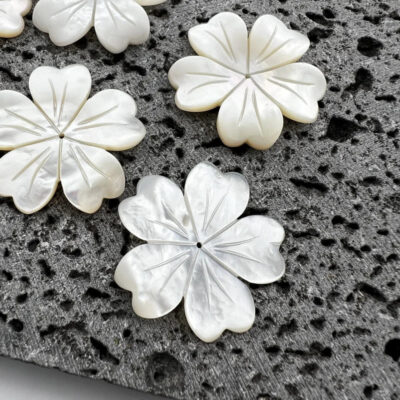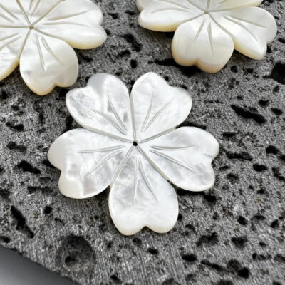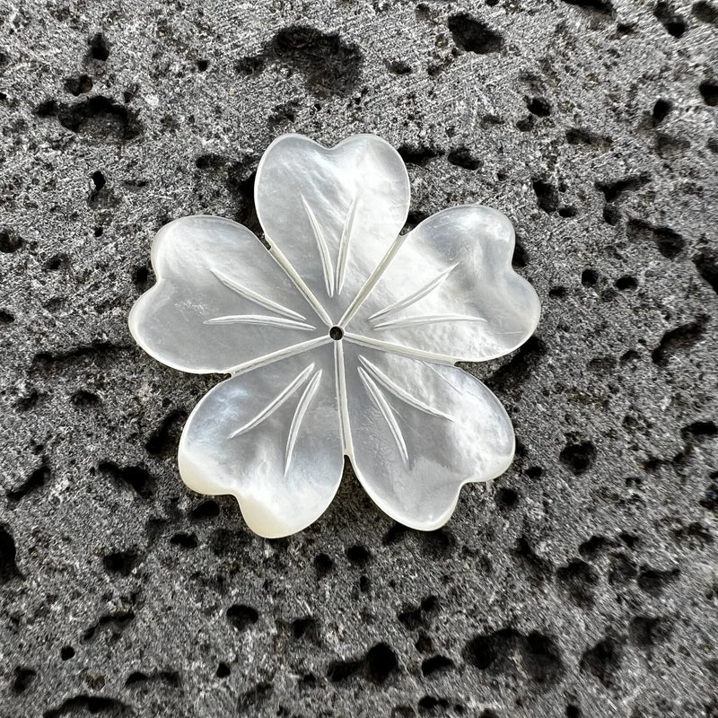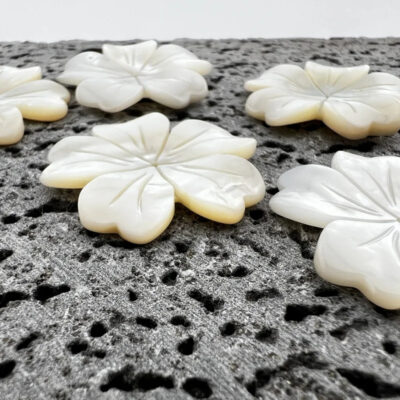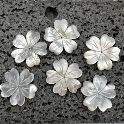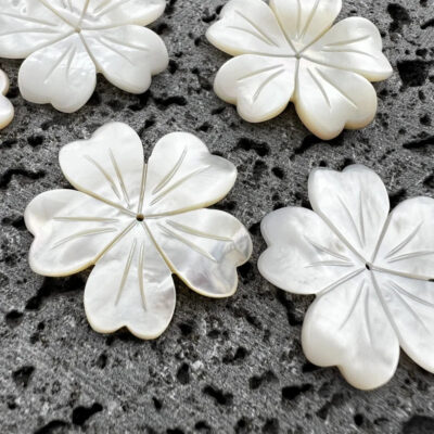 2pc Tropical Flower Beads White Mother Of Pearl 29mm Hand Carved WM-0161