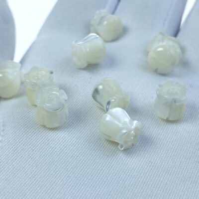 10pc Tulip Flower Beads White Mother Of Pearl Hand Carved 8mm WM-0036 - Image 2