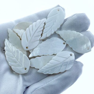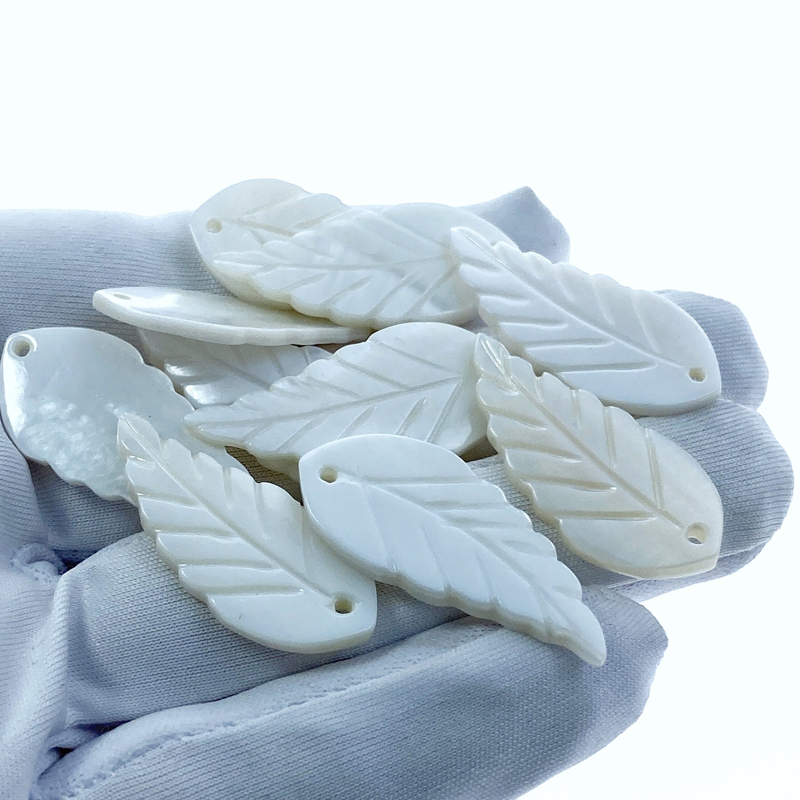 10pc White Leaf Mother Of Pearl Beads 32mm Hand Carved Freshwater Pearl Shell Necklace Pendants For Jewelry Making Nature Natural FWM-0001